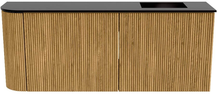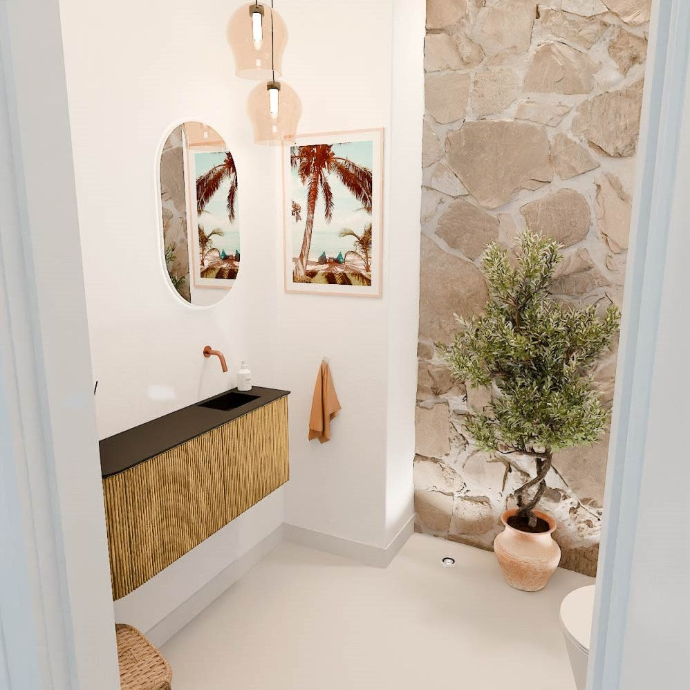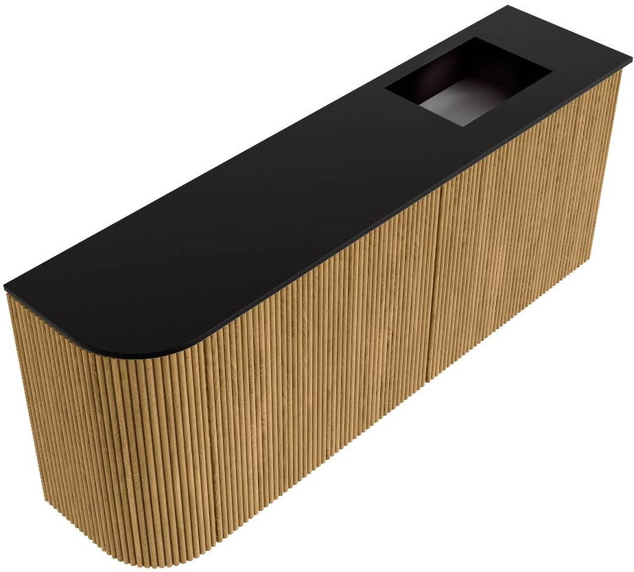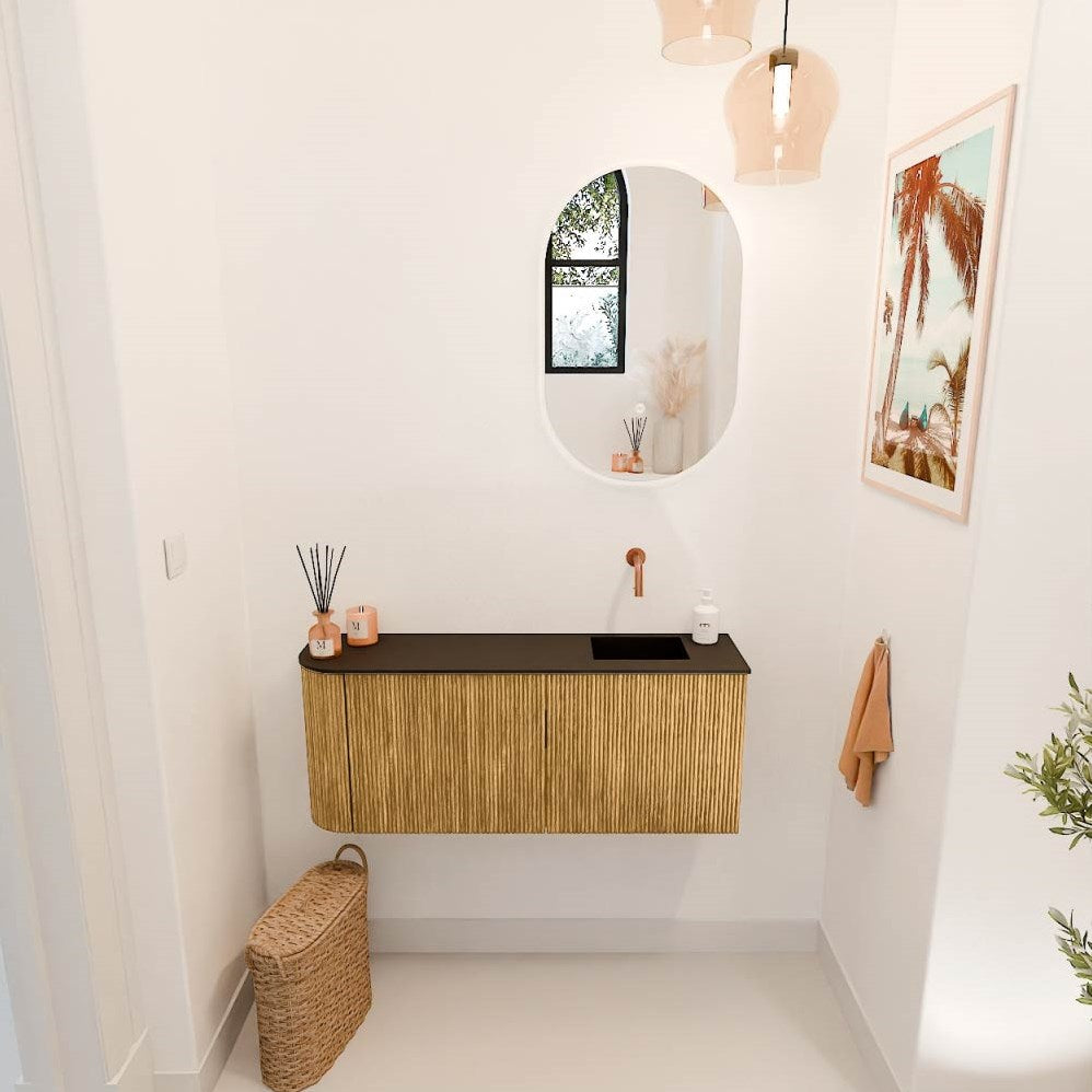 JOYA 101,6cm toiletmeubel ronding links kleur Oak. Wastafel FAYE positie Rechts Zonder kraangat kleur Urban.