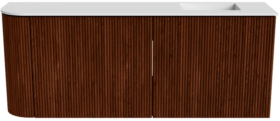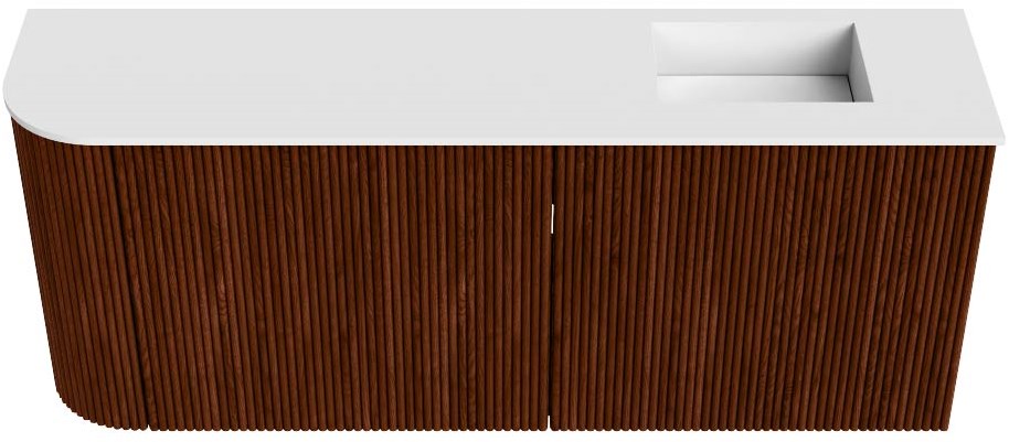 JOYA 101,6cm toiletmeubel ronding links kleur Ruby. Wastafel FAYE positie Rechts Zonder kraangat kleur Talc.