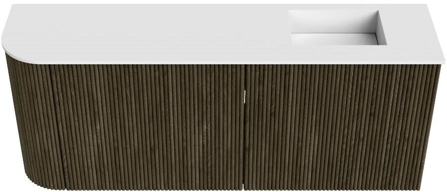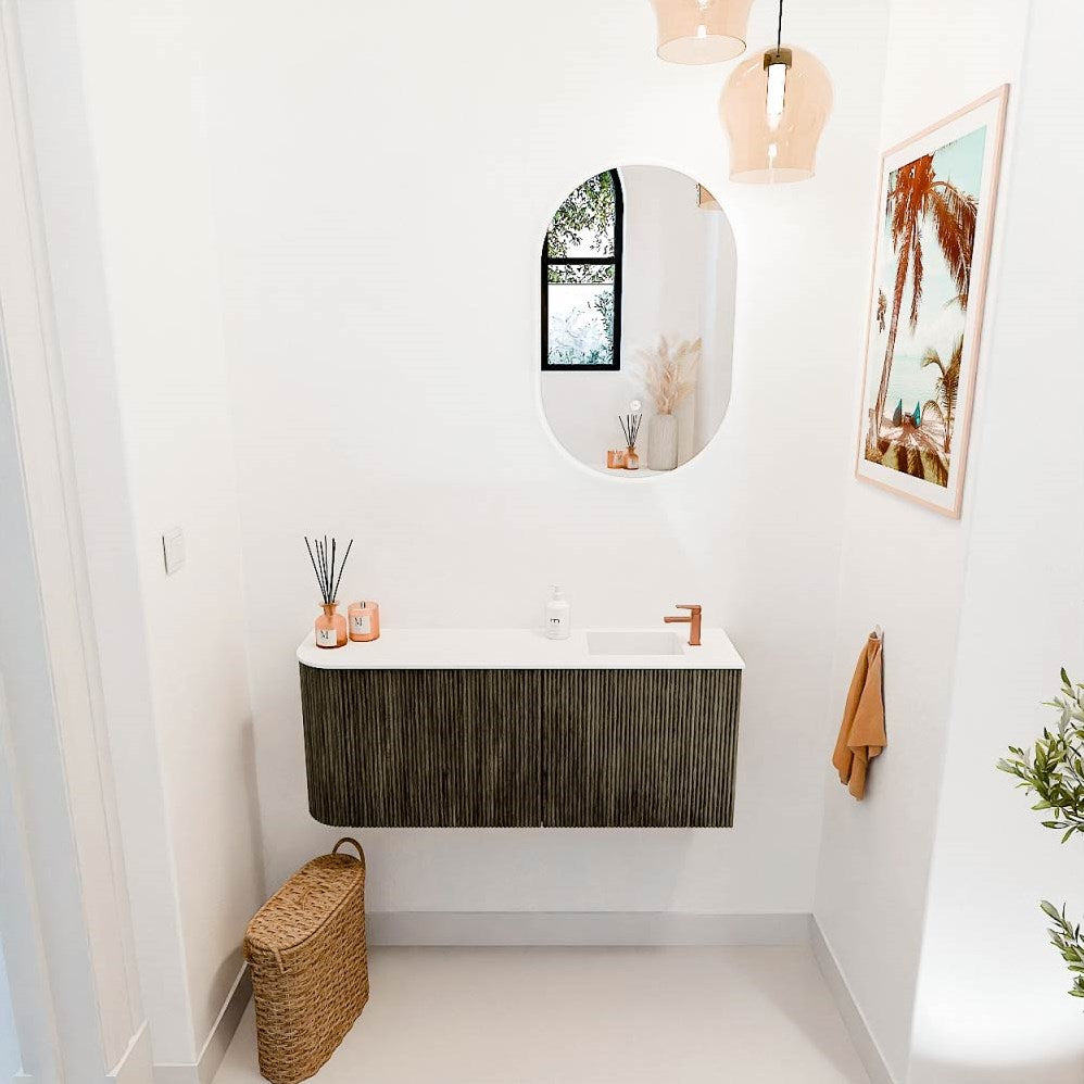 JOYA 101,6cm toiletmeubel ronding links kleur Shadow. Wastafel FAYE positie Rechts 1 kraangat kleur Talc.