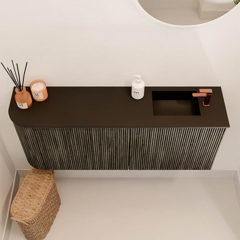 JOYA 101,6cm toiletmeubel ronding links kleur Shadow. Wastafel FAYE positie Rechts 1 kraangat kleur Urban.