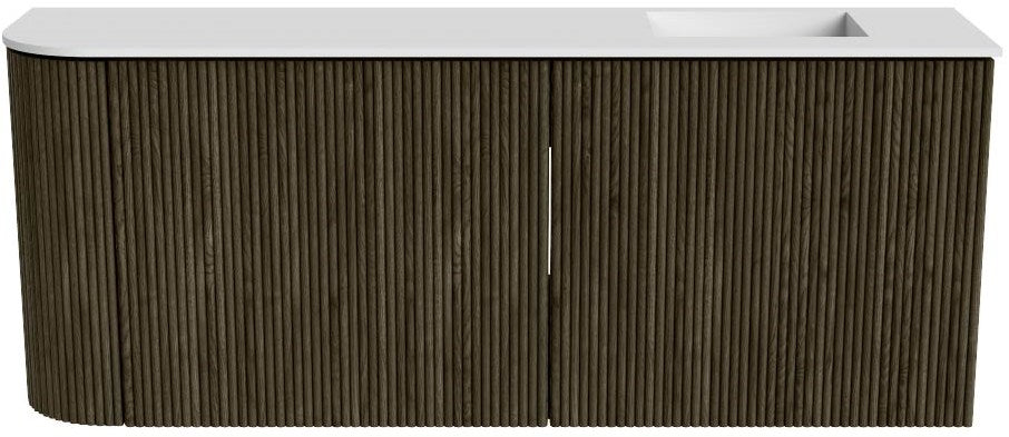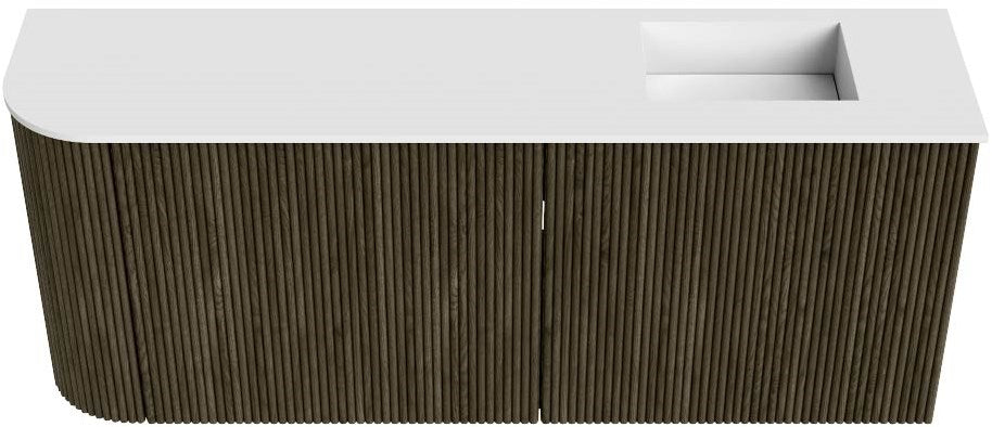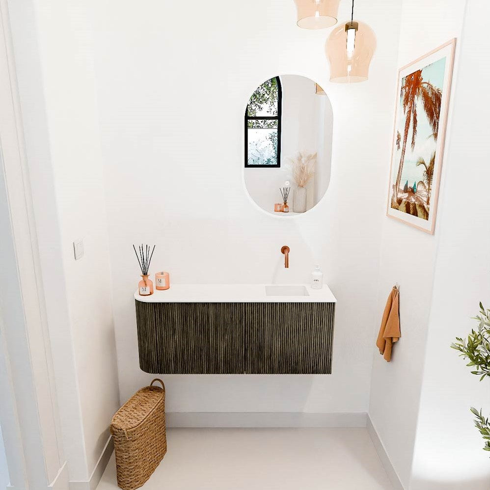 JOYA 101,6cm toiletmeubel ronding links kleur Shadow. Wastafel FAYE positie Rechts Zonder kraangat kleur Talc.