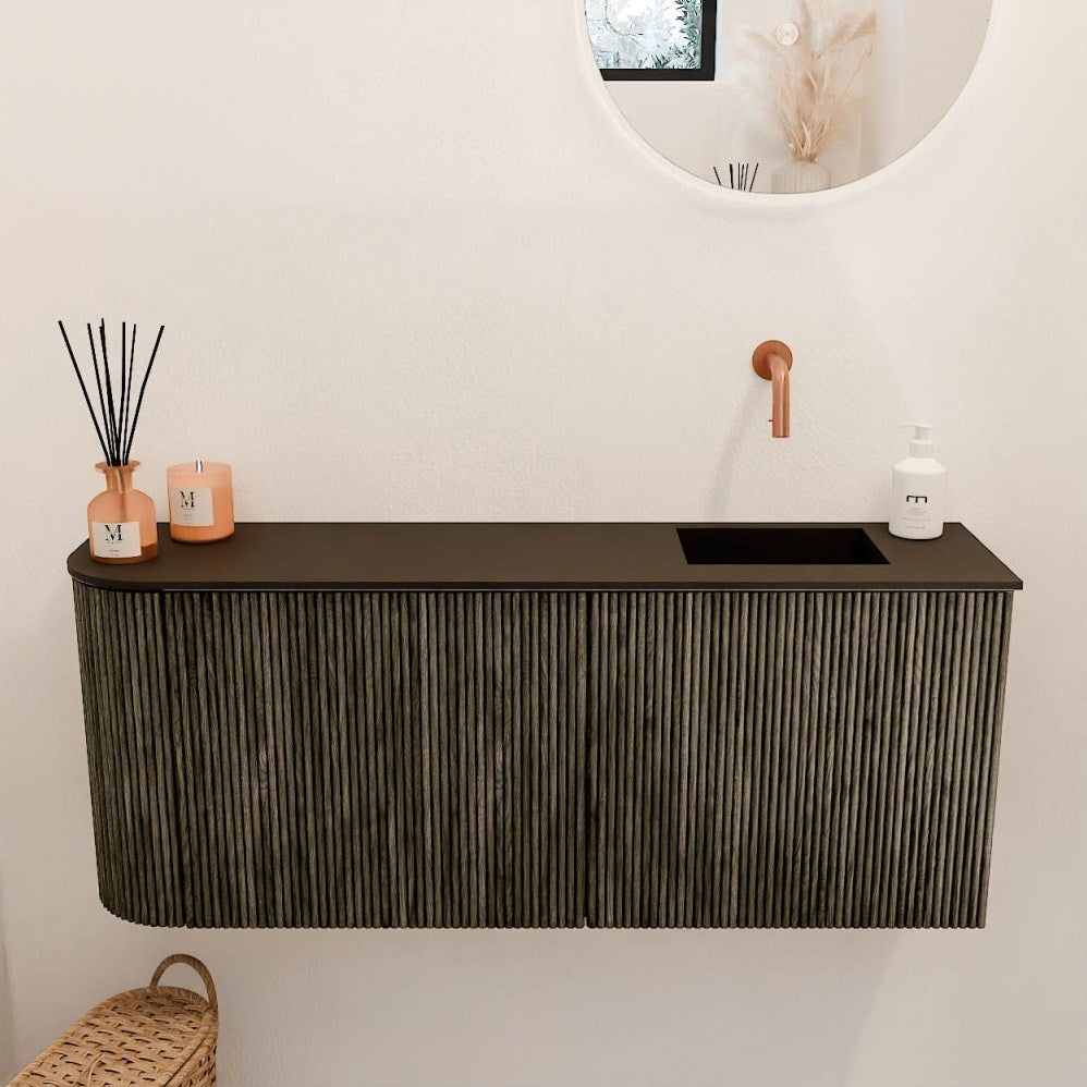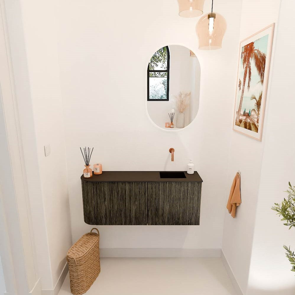 JOYA 101,6cm toiletmeubel ronding links kleur Shadow. Wastafel FAYE positie Rechts Zonder kraangat kleur Urban.
