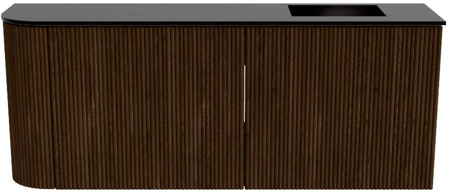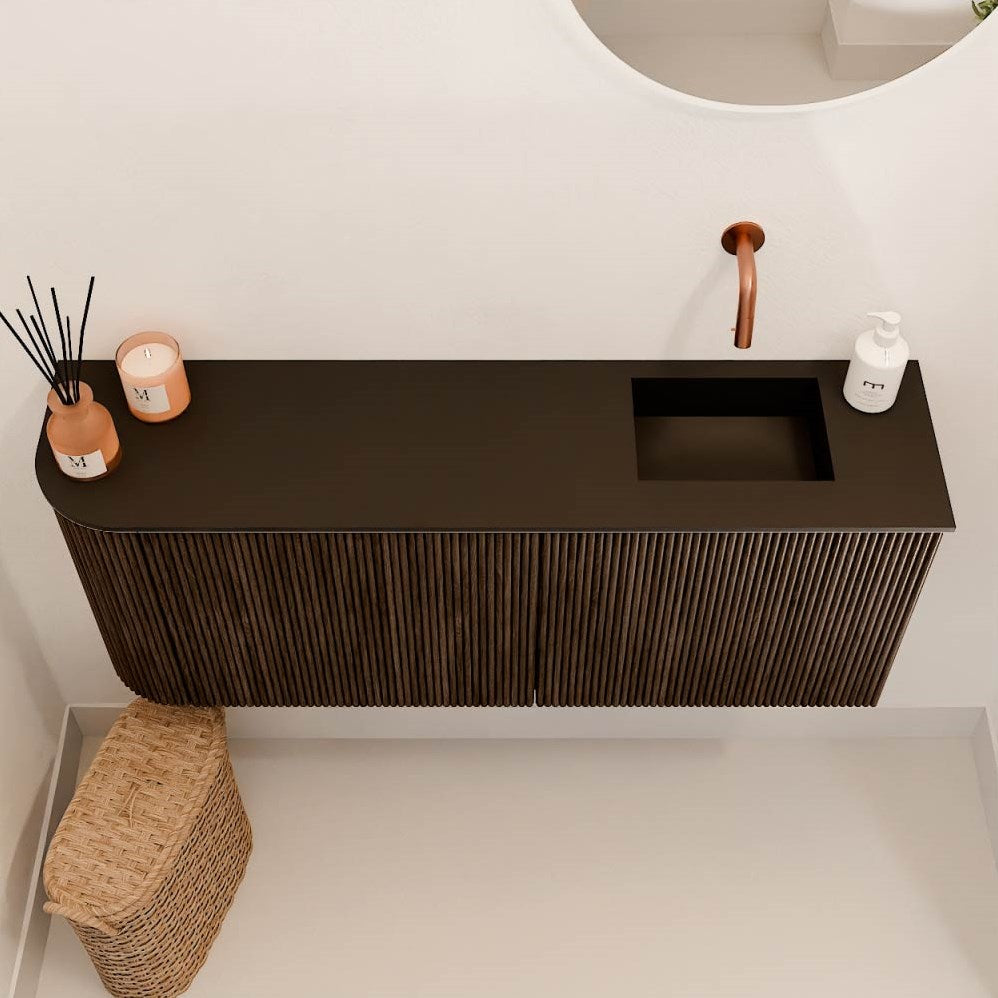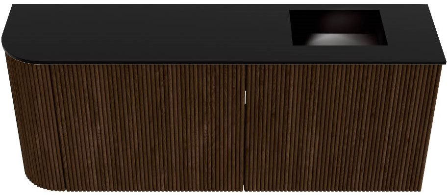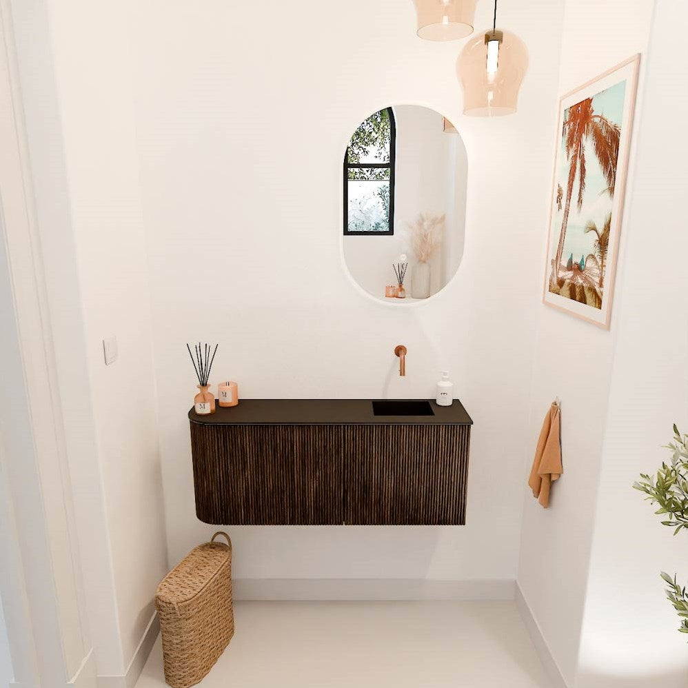 JOYA 101,6cm toiletmeubel ronding links kleur Walnut. Wastafel FAYE positie Rechts Zonder kraangat kleur Urban.