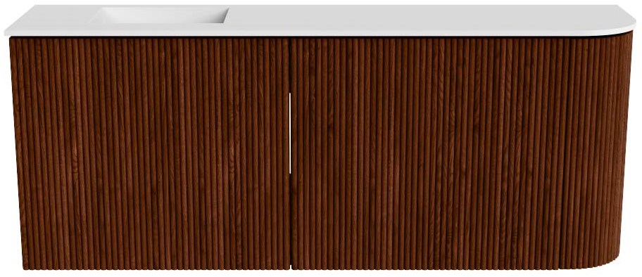 JOYA 101,6cm toiletmeubel ronding rechts kleur Ruby. Wastafel FAYE positie Links Zonder kraangat kleur Talc.
