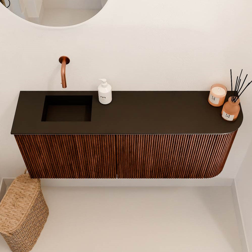Inclusief stijlvolle wastafel in twee varianten: Solid Surface Talc (wit) of Urban (zwart).