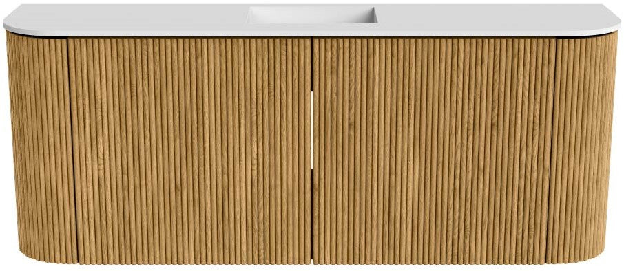 JOYA 103,2cm toiletmeubel ronding links + rechts kleur Oak. Wastafel FAYE positie Midden Zonder kraangat kleur Talc.