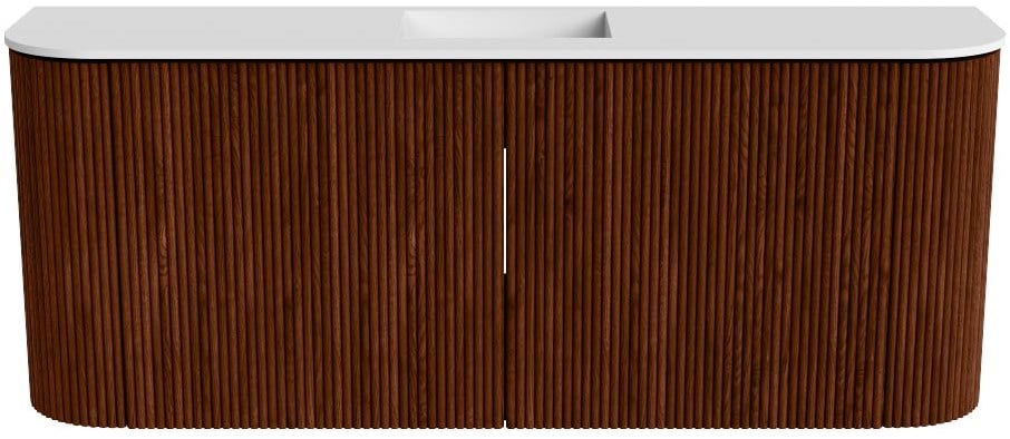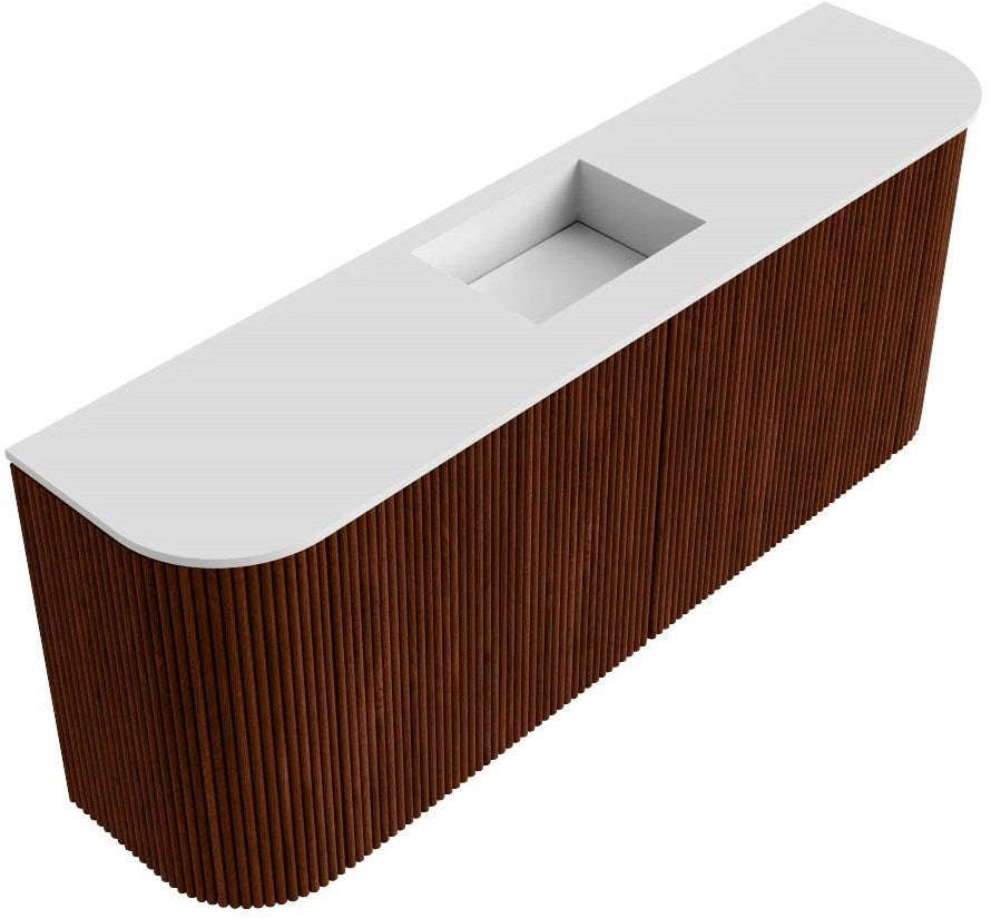 JOYA 103,2cm toiletmeubel ronding links + rechts kleur Ruby. Wastafel FAYE positie Midden 1 kraangat kleur Talc.