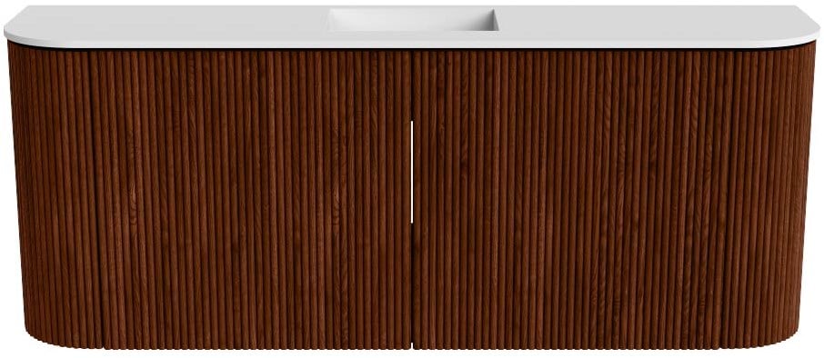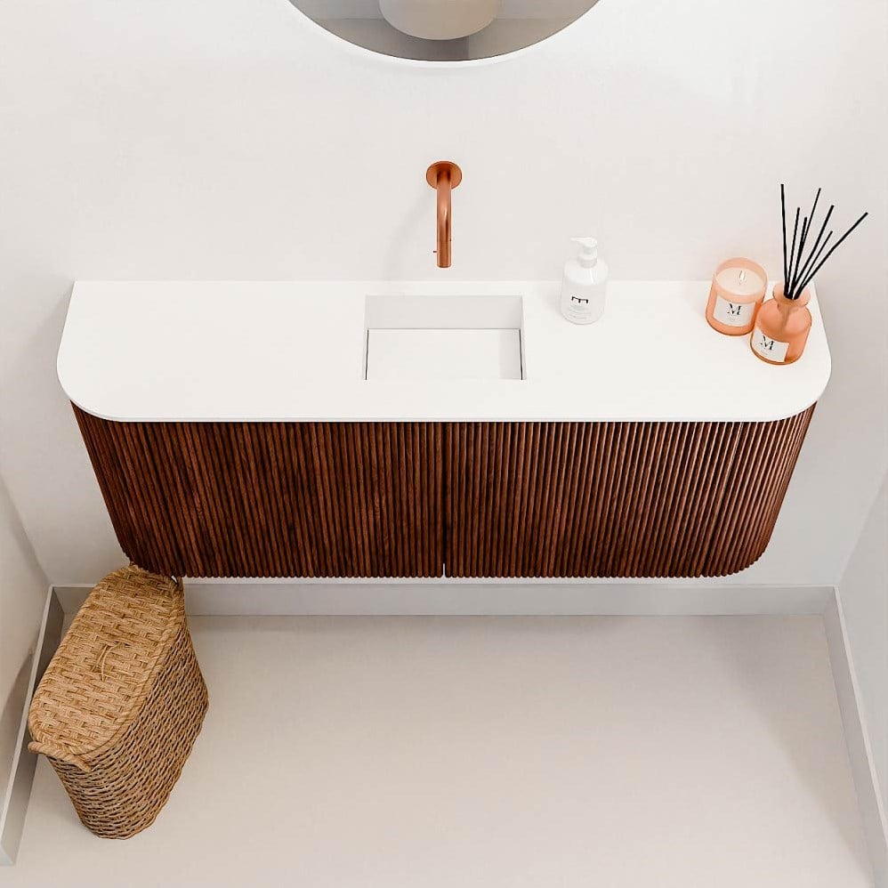 JOYA 103,2cm toiletmeubel ronding links + rechts kleur Ruby. Wastafel FAYE positie Midden Zonder kraangat kleur Talc.