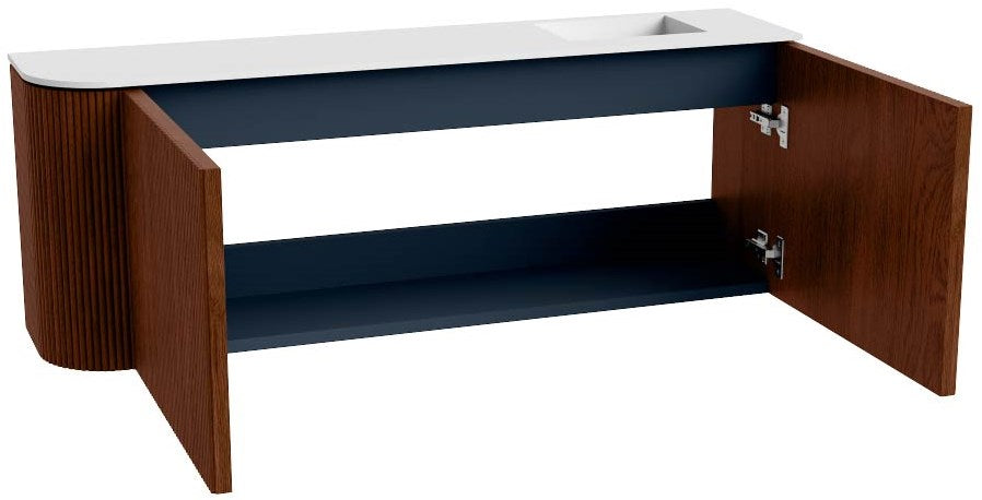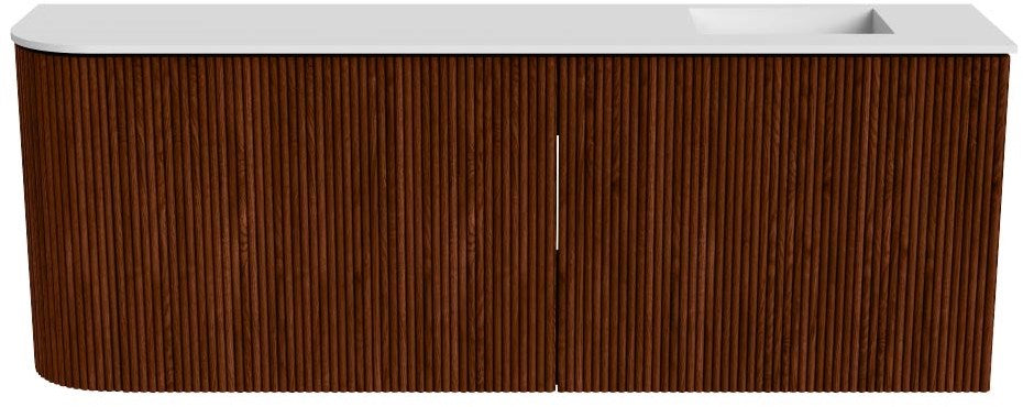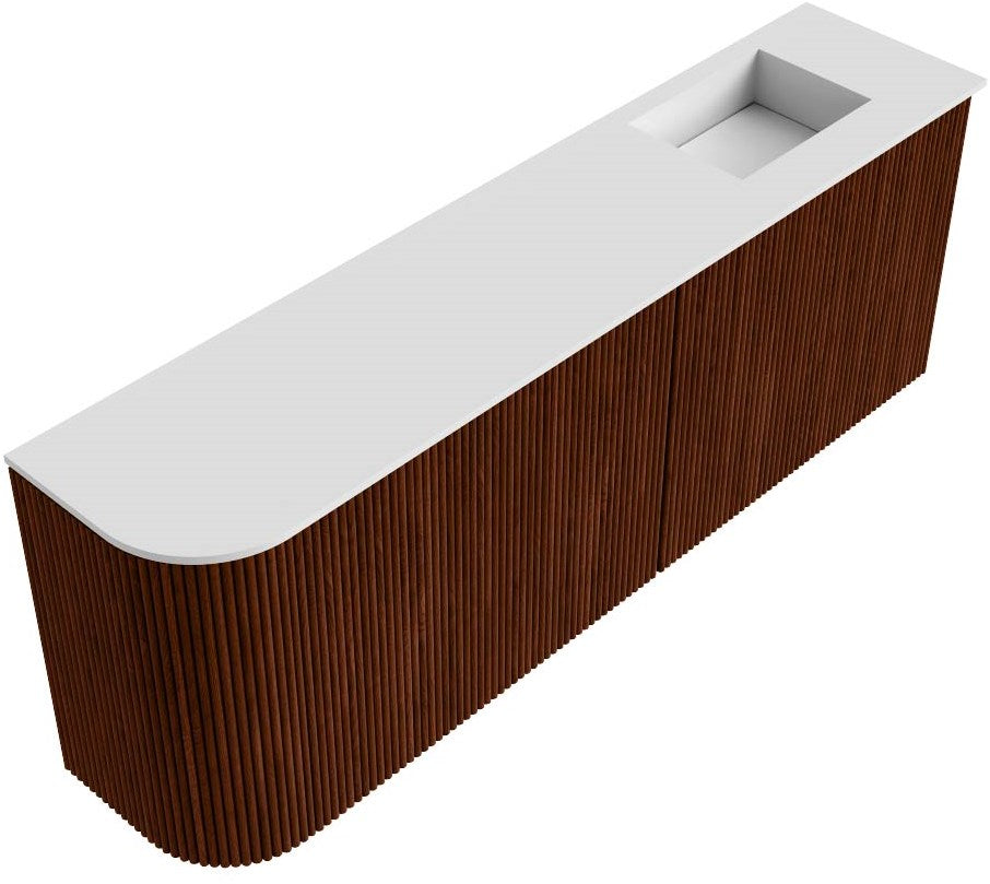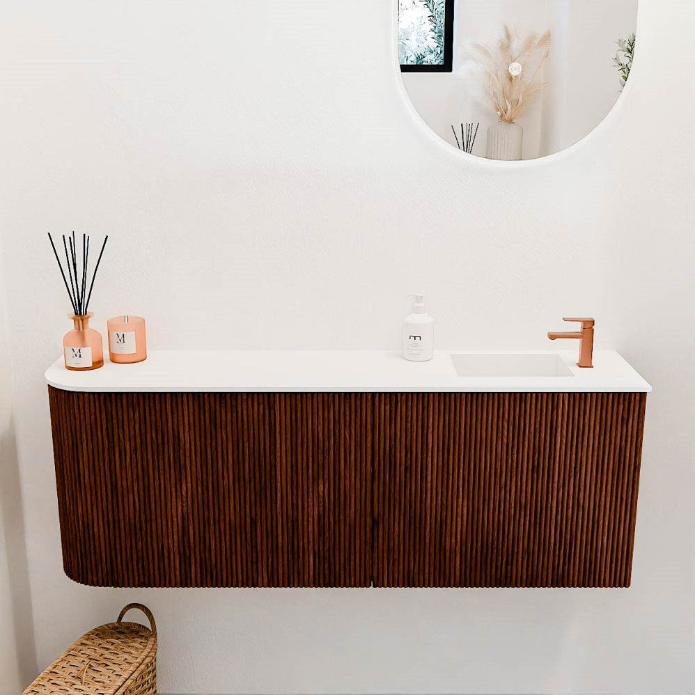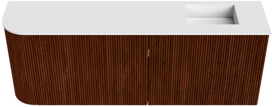 JOYA 111,6cm toiletmeubel ronding links kleur Ruby. Wastafel FAYE positie Rechts 1 kraangat kleur Talc.
