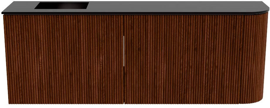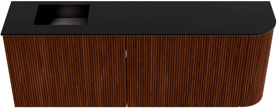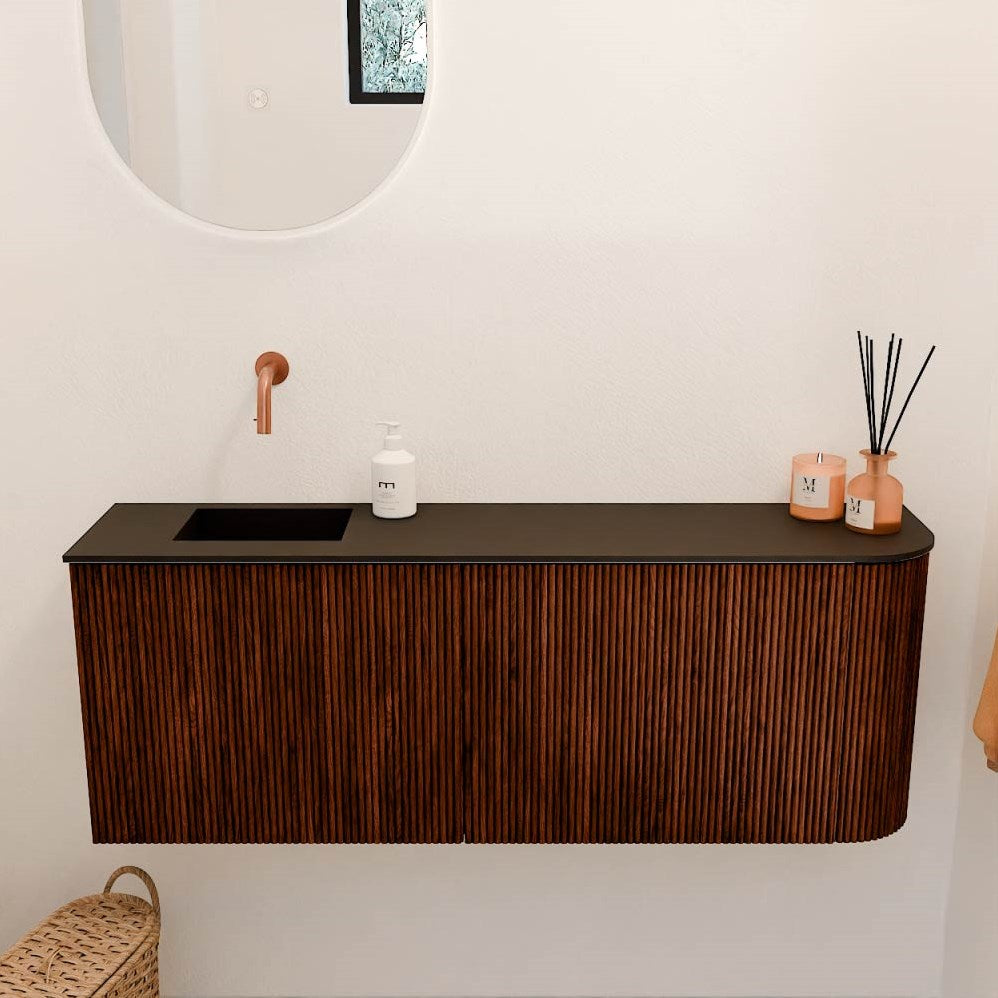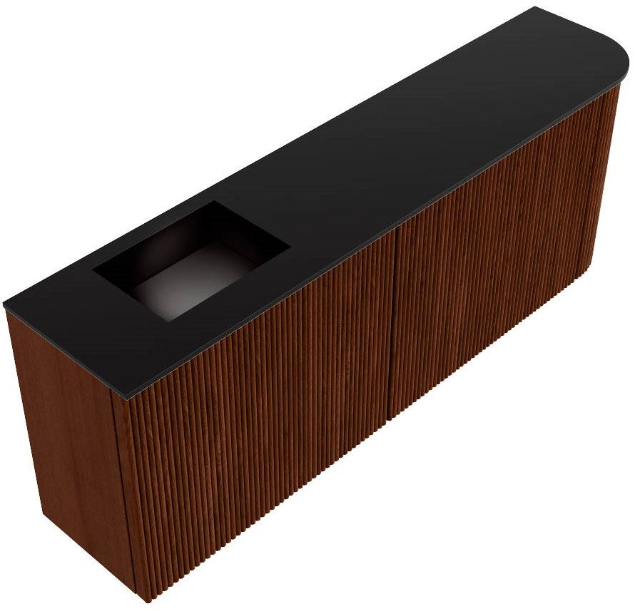 JOYA 111,6cm toiletmeubel ronding rechts kleur Ruby. Wastafel FAYE positie Links Zonder kraangat kleur Urban.