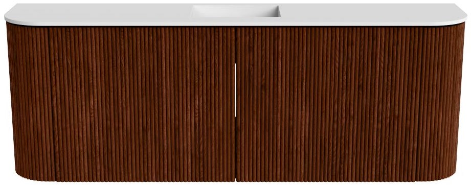 JOYA 113,2cm toiletmeubel ronding links + rechts kleur Ruby. Wastafel FAYE positie Midden 1 kraangat kleur Talc.