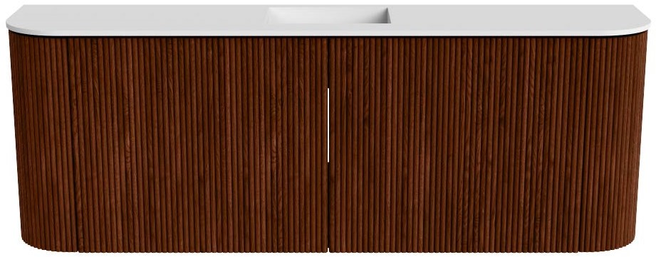 JOYA 113,2cm toiletmeubel ronding links + rechts kleur Ruby. Wastafel FAYE positie Midden Zonder kraangat kleur Talc.