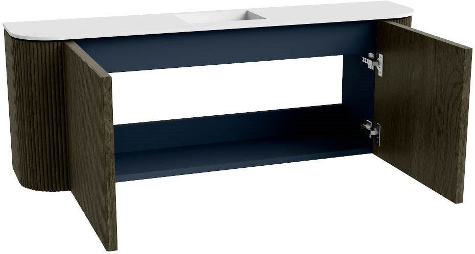JOYA 113,2cm toiletmeubel ronding links + rechts kleur Shadow. Wastafel FAYE positie Midden Zonder kraangat kleur Talc.
