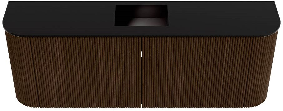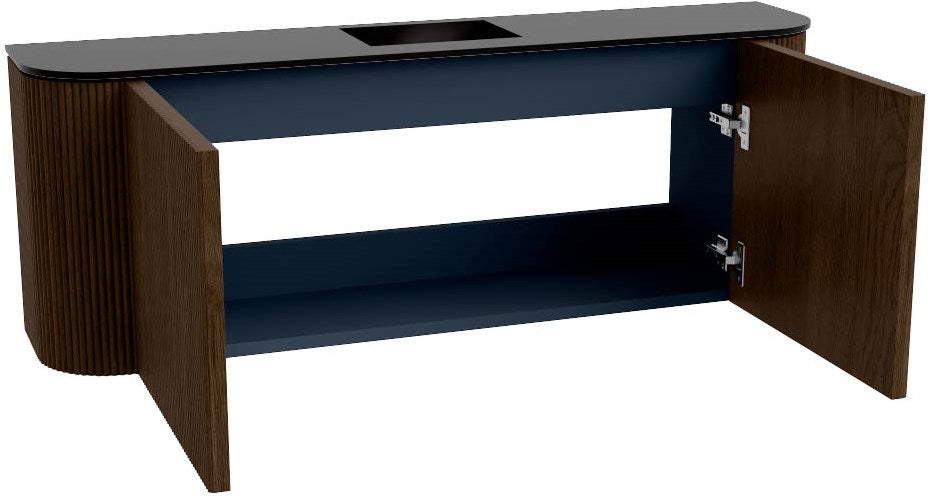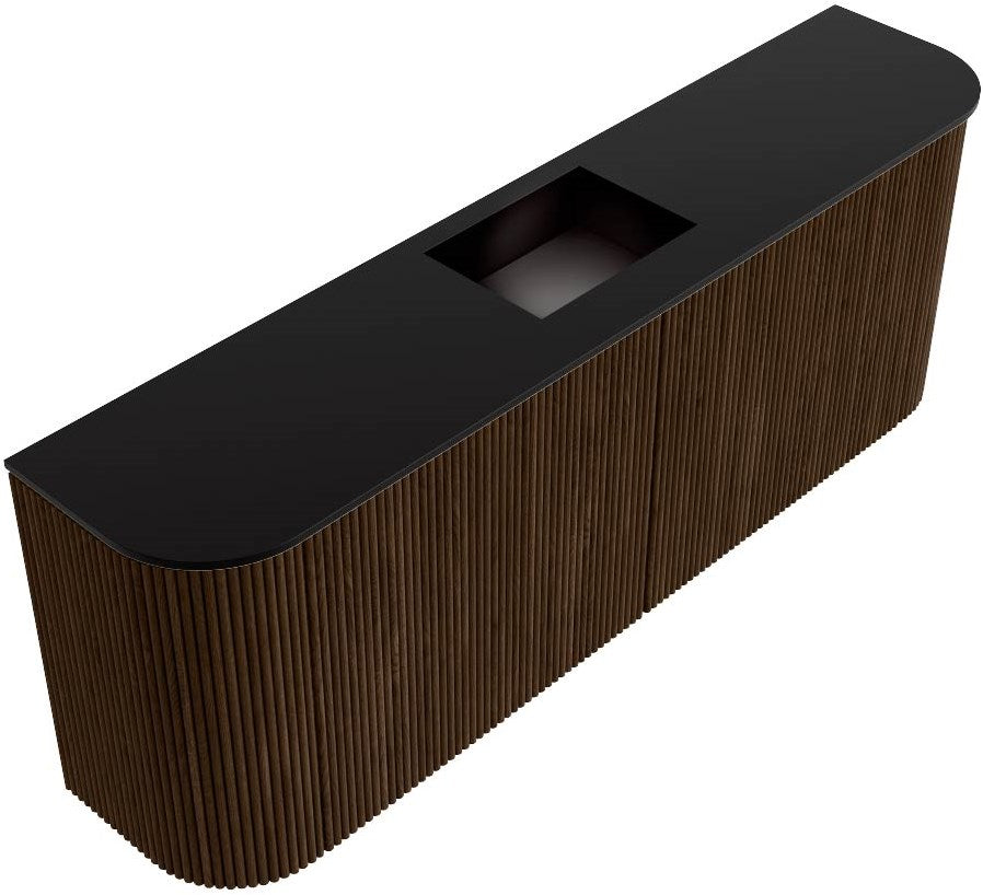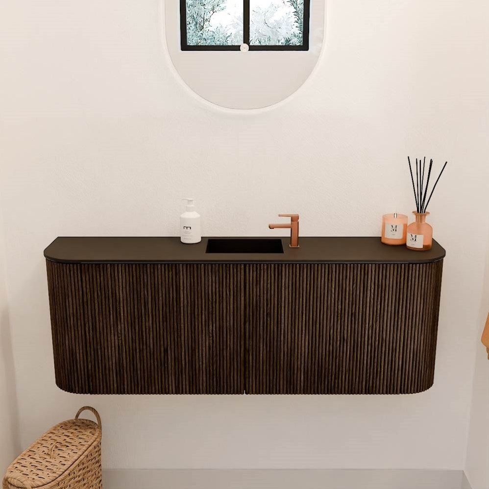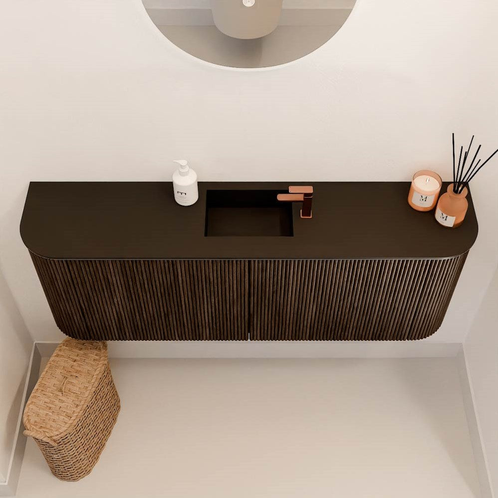 JOYA 113,2cm toiletmeubel ronding links + rechts kleur Walnut. Wastafel FAYE positie Midden 1 kraangat kleur Urban.