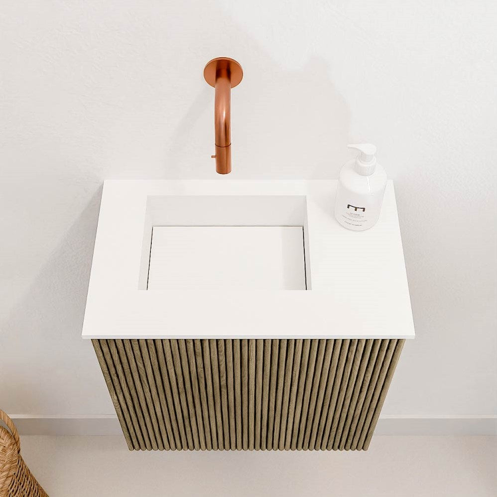 Mogelijkheid tot maatwerk: positie kraangat, zijde van de wastafel (links, rechts of midden), en randafwerking (afgerond, semi-afgerond of recht)