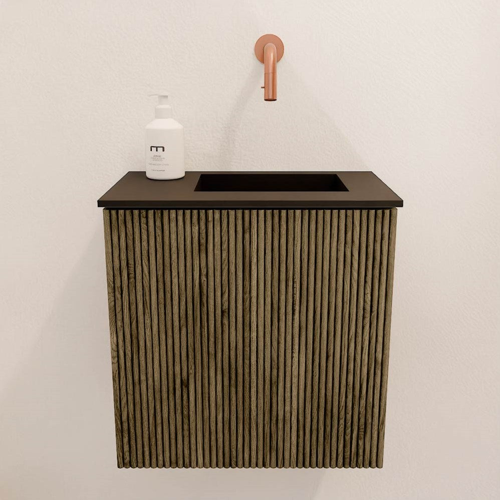 JOYA 40cm toiletmeubel kleur Dusk. Wastafel FAYE positie Rechts Zonder kraangat kleur Urban