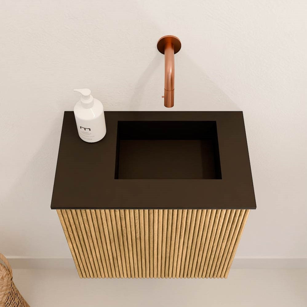 Mogelijkheid tot maatwerk: positie kraangat, zijde van de wastafel (links, rechts of midden), en randafwerking (afgerond, semi-afgerond of recht)