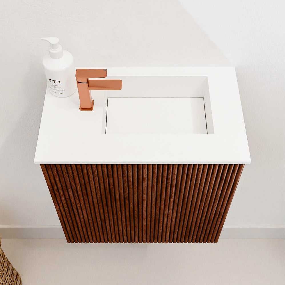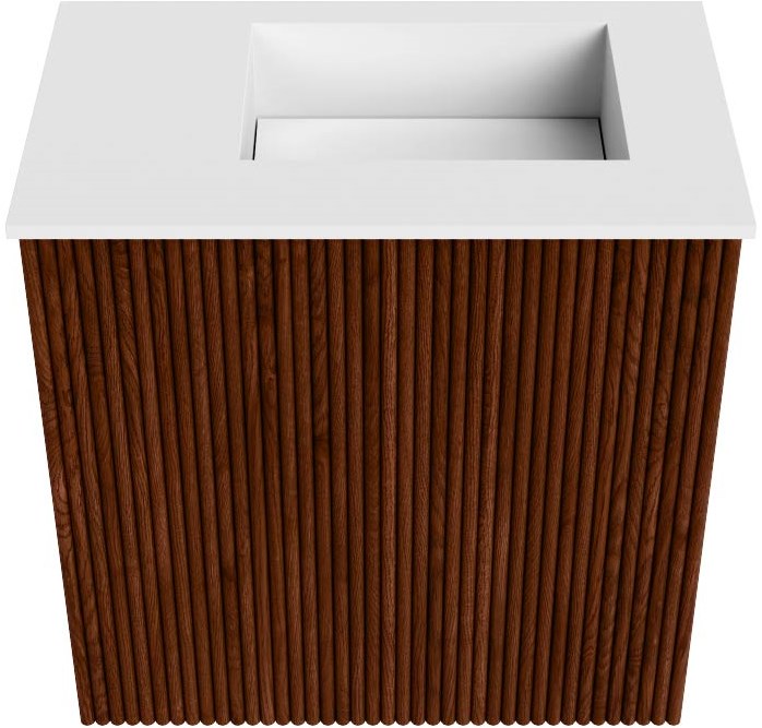 Mogelijkheid tot maatwerk: positie kraangat, zijde van de wastafel (links, rechts of midden), en randafwerking (afgerond, semi-afgerond of recht)