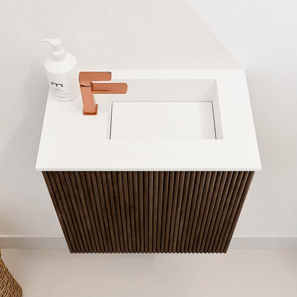 Mogelijkheid tot maatwerk: positie kraangat, zijde van de wastafel (links, rechts of midden), en randafwerking (afgerond, semi-afgerond of recht)