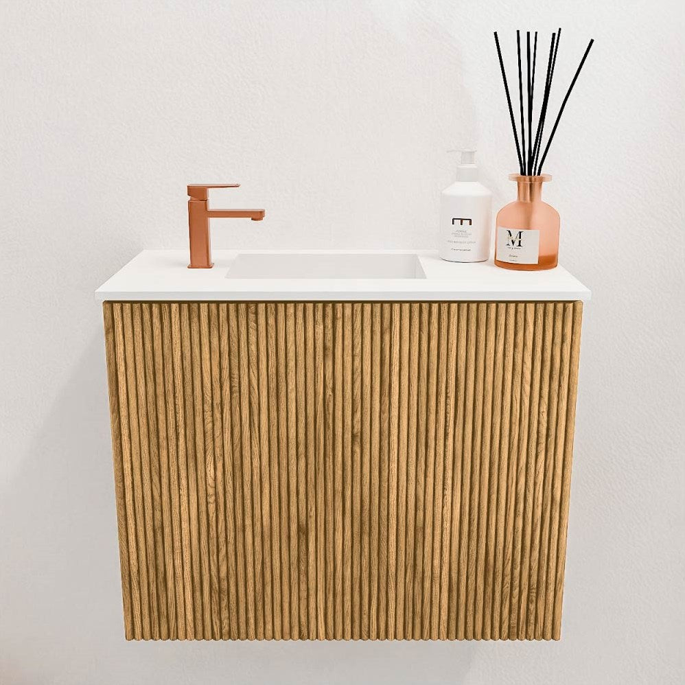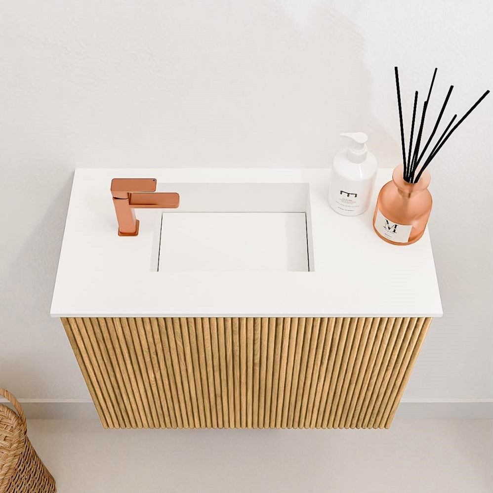 Upgrade je badkamer met het elegante JOYA wastafelmeubel, ontworpen met karakteristieke verticale ribben voor een moderne en verfijnde uitstraling. Gemaakt van massief eiken en eikenfineer, combineert dit premium meubel natuurlijke schoonheid met uitzonderlijke duurzaamheid. Met oog voor detail en vakmanschap is dit de perfecte keuze voor een luxueuze en stijlvolle badkamer.