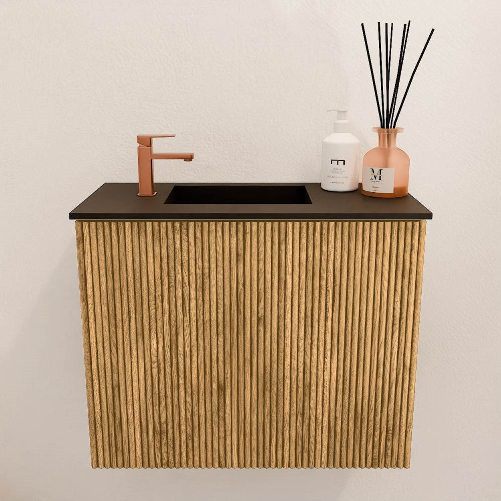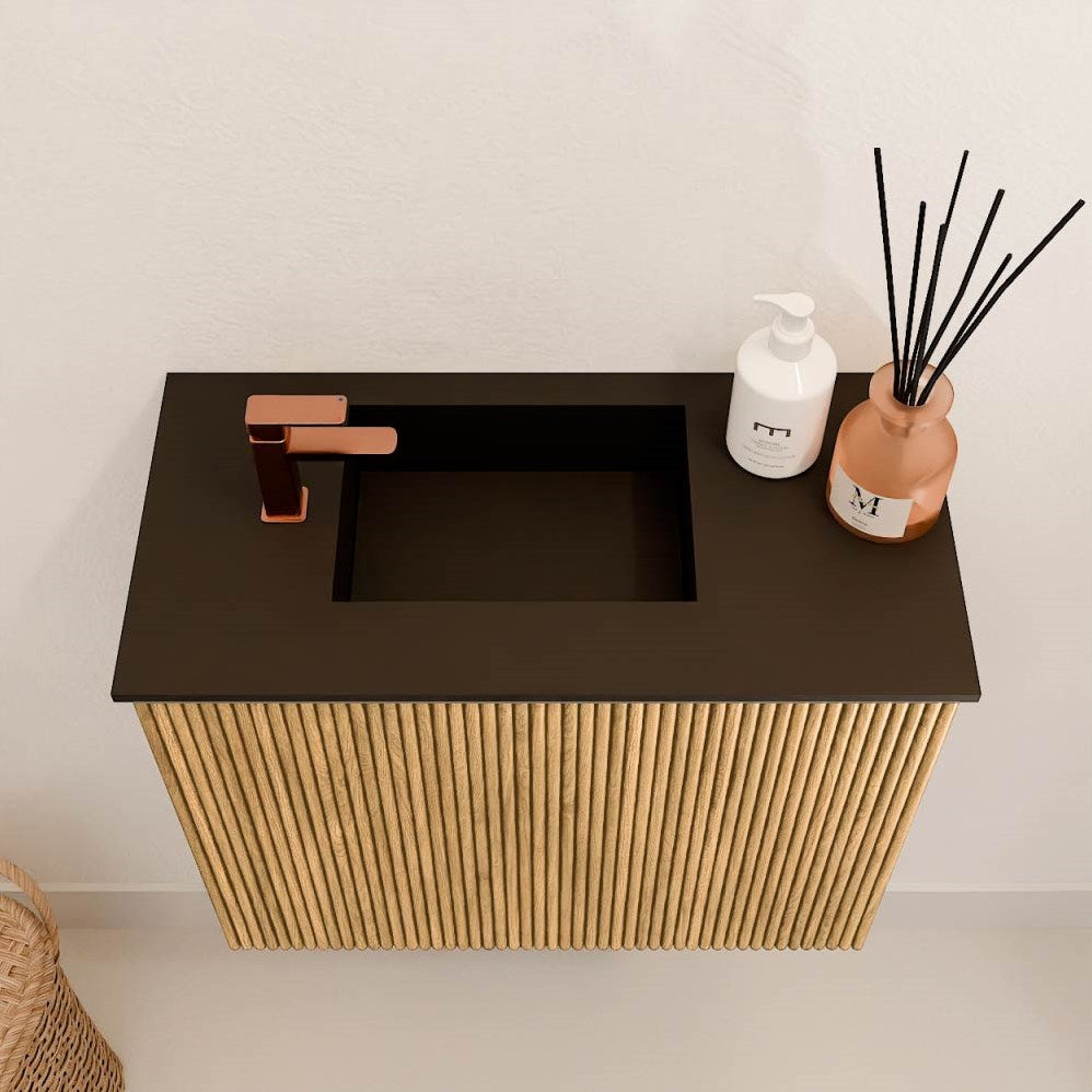 Upgrade je badkamer met het elegante JOYA wastafelmeubel, ontworpen met karakteristieke verticale ribben voor een moderne en verfijnde uitstraling. Gemaakt van massief eiken en eikenfineer, combineert dit premium meubel natuurlijke schoonheid met uitzonderlijke duurzaamheid. Met oog voor detail en vakmanschap is dit de perfecte keuze voor een luxueuze en stijlvolle badkamer.