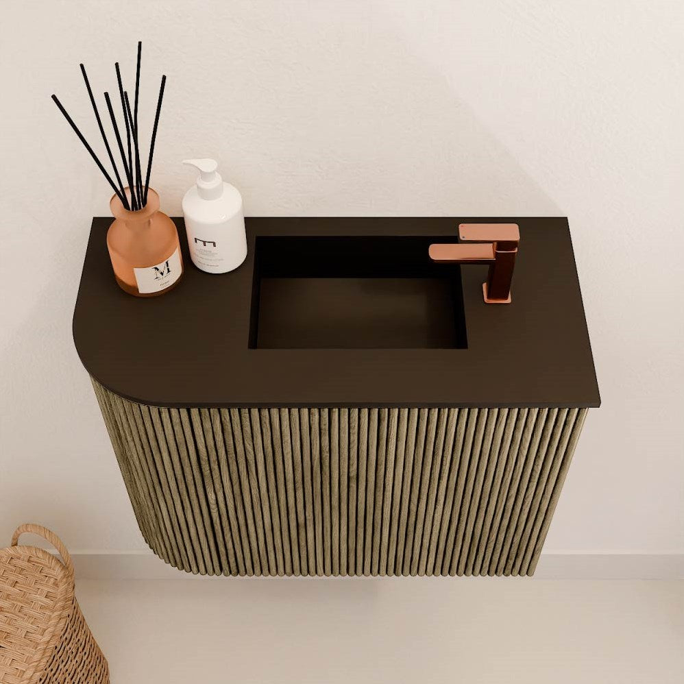 Inclusief stijlvolle wastafel in twee kleuren: Solid Surface Talc (wit) of Urban (zwart)