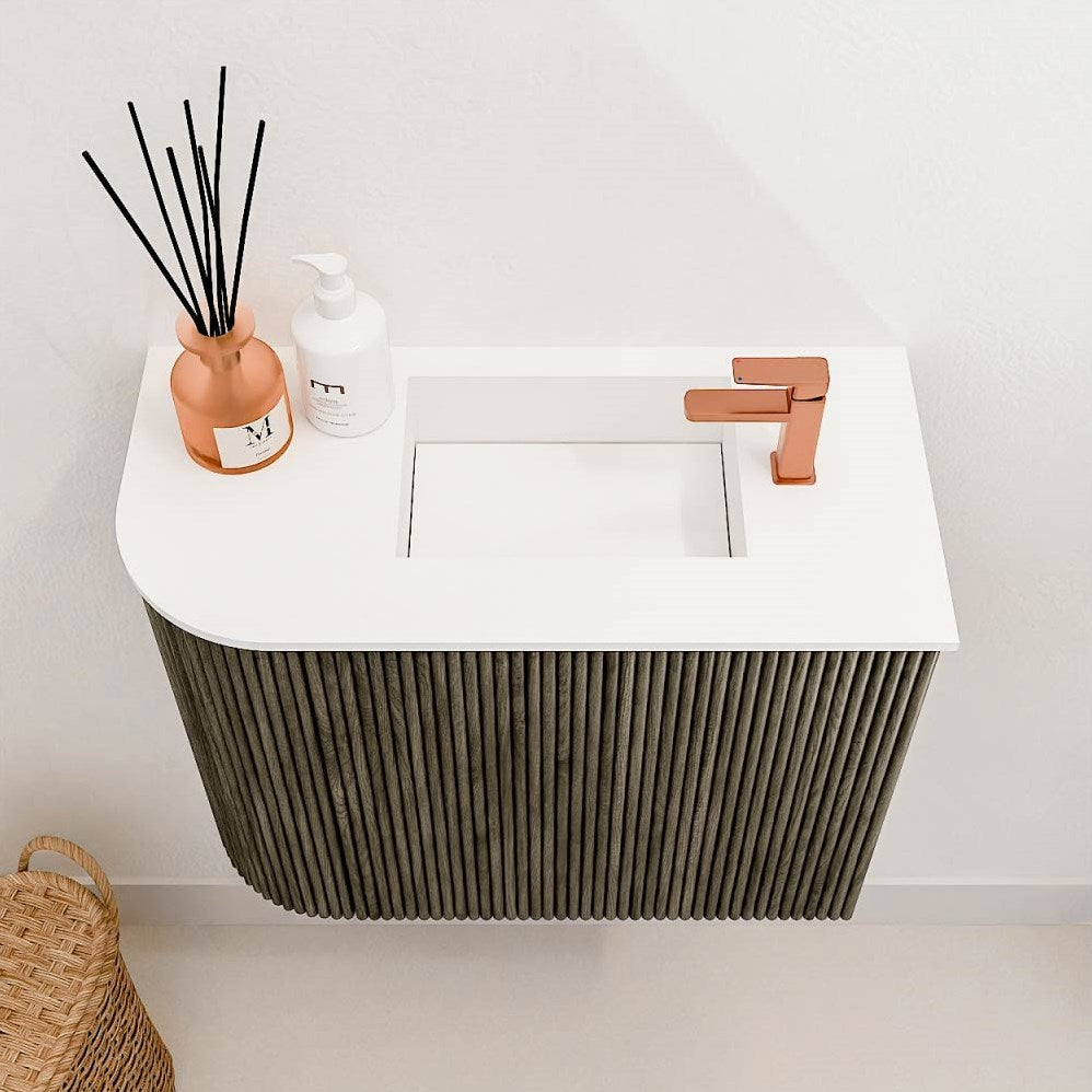 Inclusief stijlvolle wastafel in twee kleuren: Solid Surface Talc (wit) of Urban (zwart)