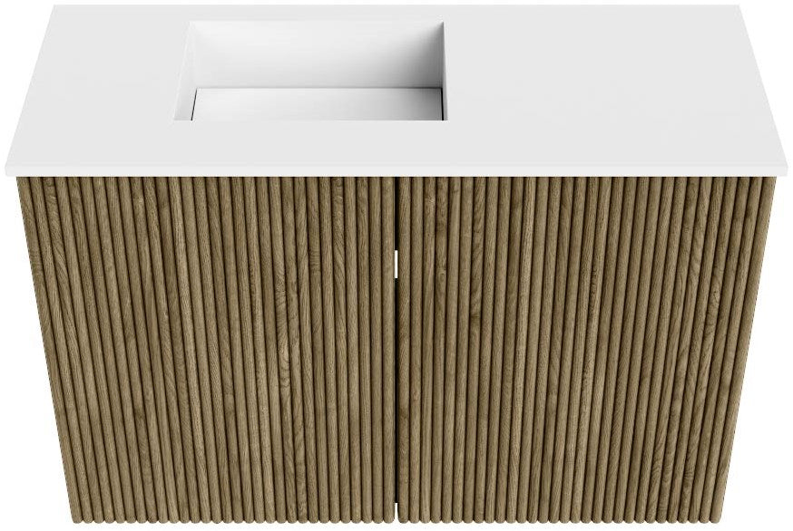 • Inclusief stijlvolle wastafel in 2 kleuren Solid Surface Talc (wit) of Urban (zwart).