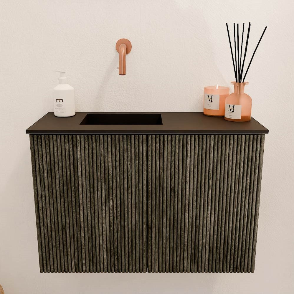 JOYA 60cm toiletmeubel kleur Shadow. Wastafel FAYE positie Links Zonder kraangat kleur Urban.
