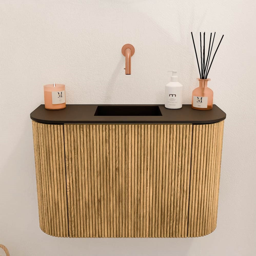 Ben je op zoek naar een stijlvol en exclusief toiletmeubel? Ontdek het JOYA toiletmeubel met verticale ribbels! Dit hoogwaardige meubel combineert massief eikenhout en eikenfineer voor een natuurlijke, luxe uitstraling. Met oog voor detail en vakmanschap is dit de perfecte keuze voor een verfijnde toiletruimte.