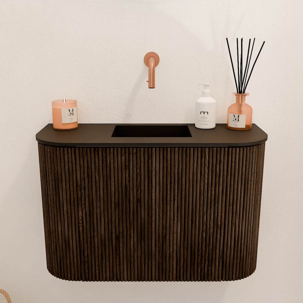 Ben je op zoek naar een stijlvol en exclusief toiletmeubel? Ontdek het JOYA toiletmeubel met verticale ribbels! Dit hoogwaardige meubel combineert massief eikenhout en eikenfineer voor een natuurlijke, luxe uitstraling. Met oog voor detail en vakmanschap is dit de perfecte keuze voor een verfijnde toiletruimte.