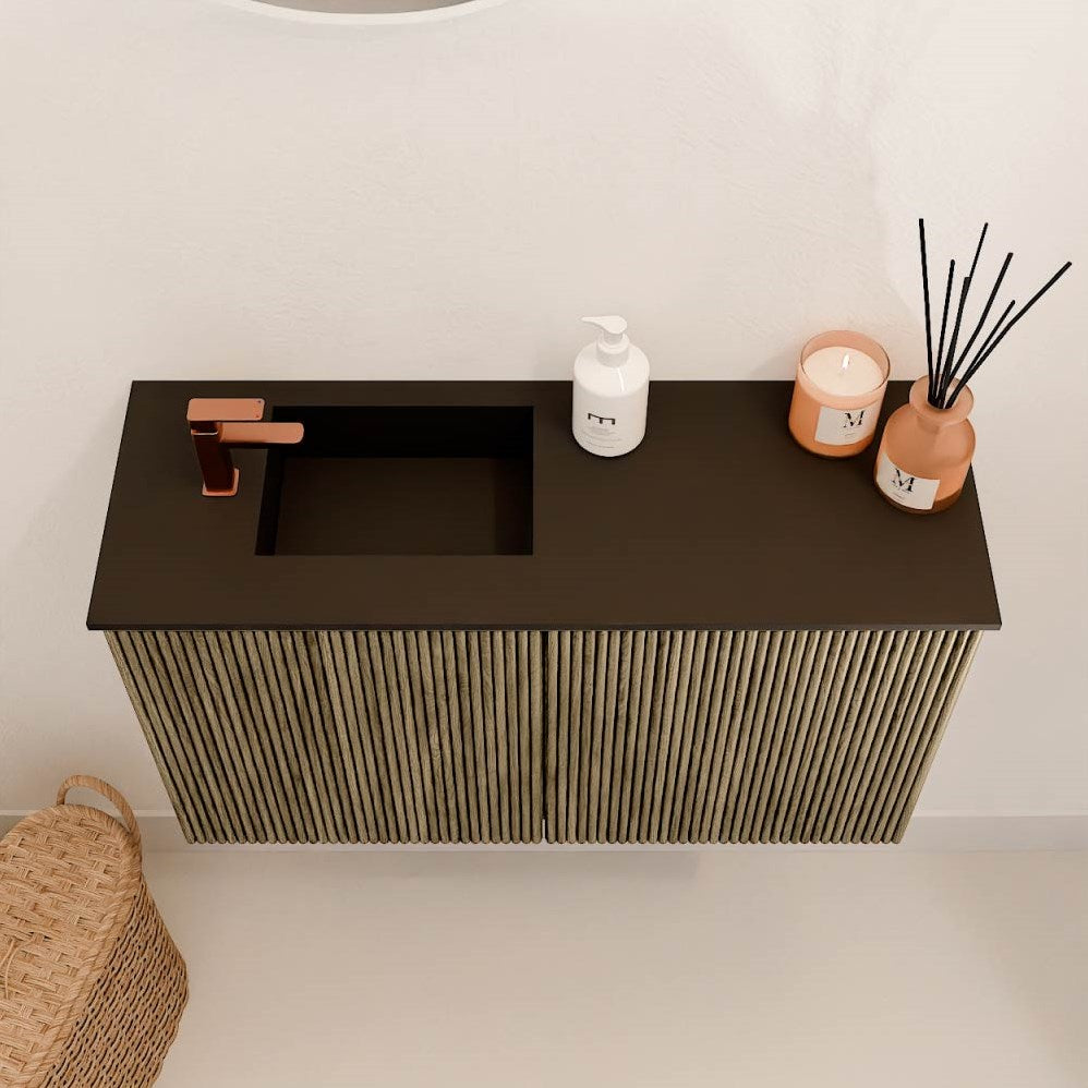JOYA 70cm toiletmeubel kleur Dusk. Wastafel FAYE positie Links 1 kraangat kleur Urban.