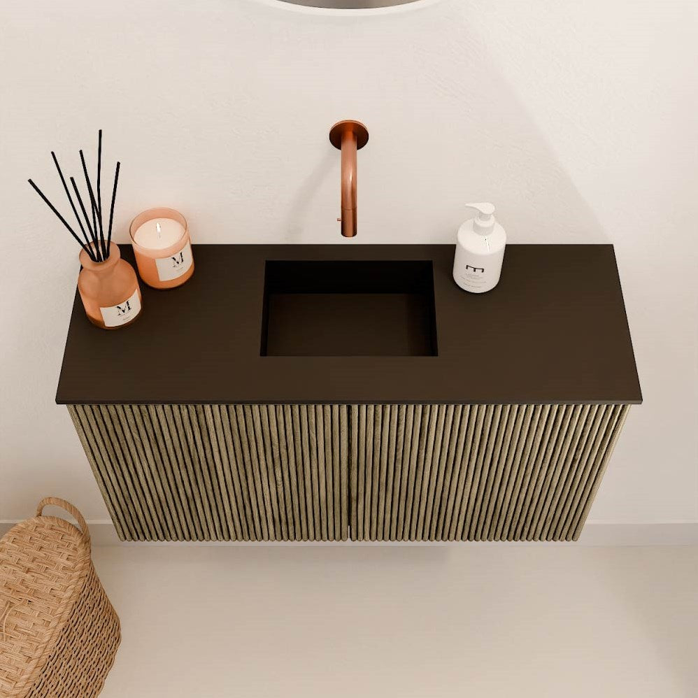 Inclusief elegante wastafel in twee kleuren: Solid Surface Talc (wit) of Urban (zwart)