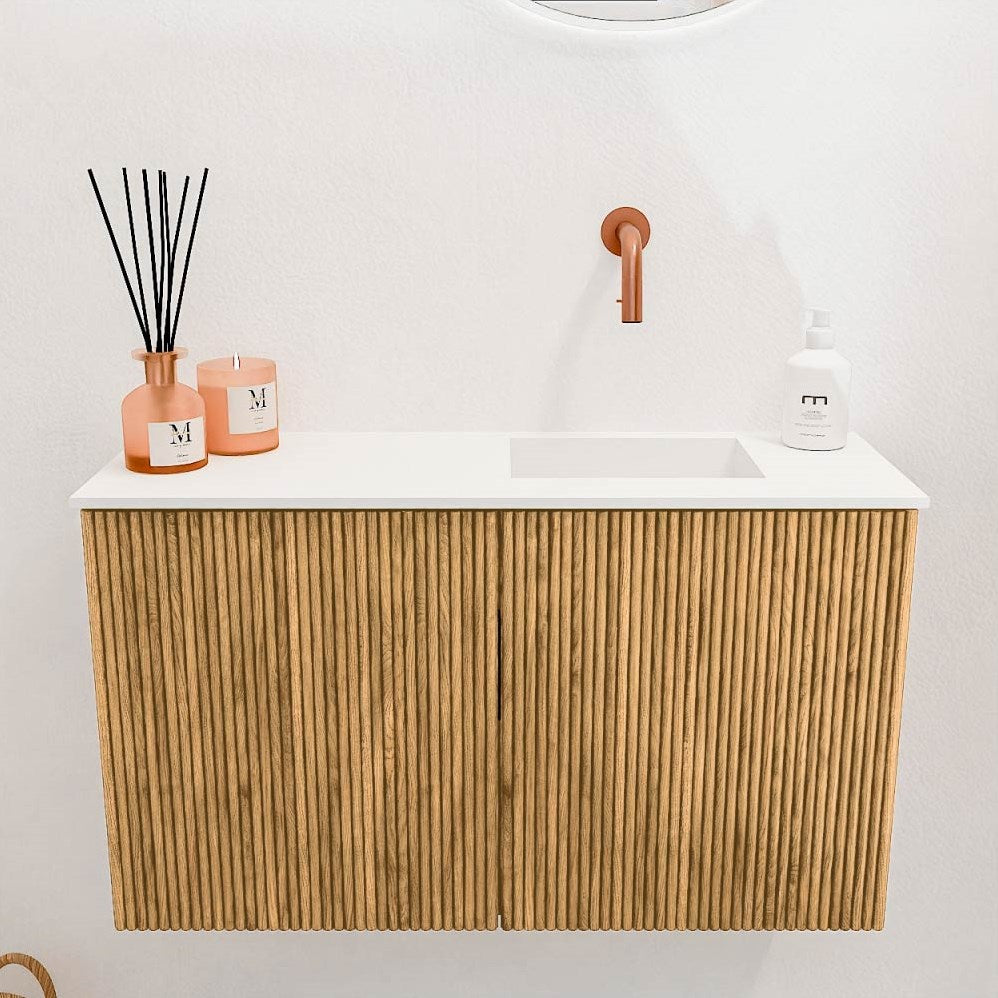 Ben je op zoek naar een stijlvol en exclusief toiletmeubel? Ontdek het JOYA toiletmeubel met verticale ribbels! Dit premium meubel combineert massief eikenhout en eikenfineer voor een natuurlijke, luxe uitstraling. Met oog voor detail en vakmanschap is dit de perfecte keuze voor een verfijnde toiletruimte.