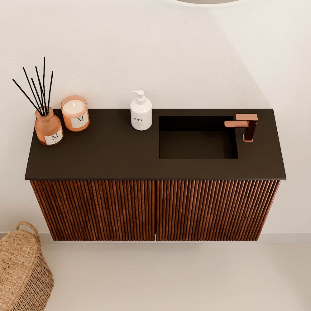 Inclusief elegante wastafel in twee kleuren: Solid Surface Talc (wit) of Urban (zwart)