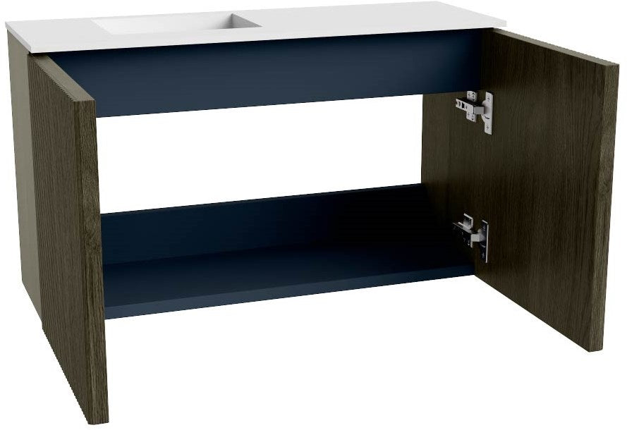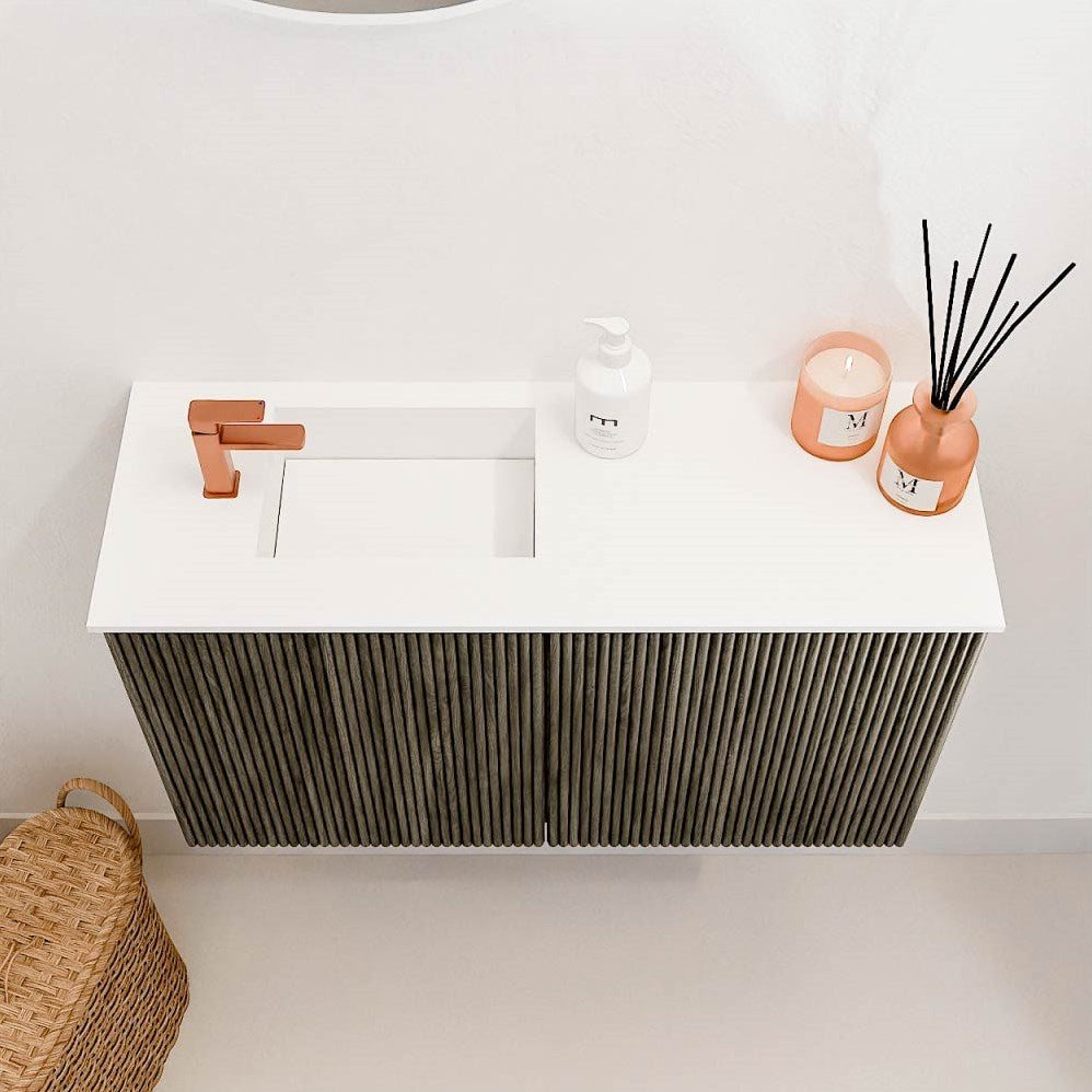 Inclusief elegante wastafel in twee kleuren: Solid Surface Talc (wit) of Urban (zwart)