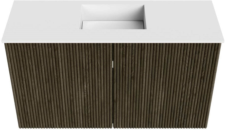 Inclusief elegante wastafel in twee kleuren: Solid Surface Talc (wit) of Urban (zwart)