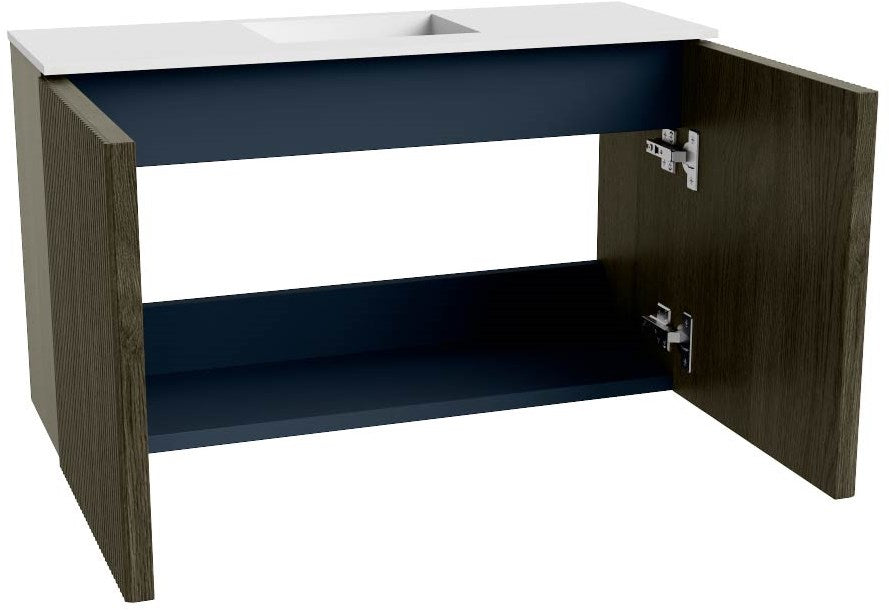 Inclusief elegante wastafel in twee kleuren: Solid Surface Talc (wit) of Urban (zwart)