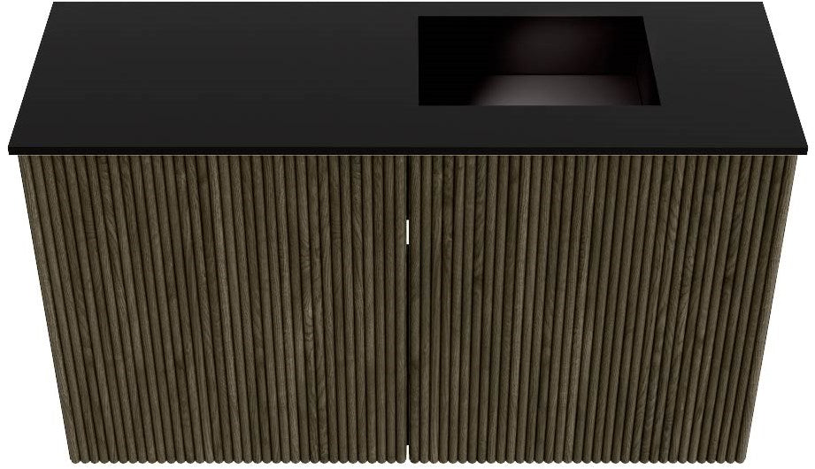Inclusief elegante wastafel in twee kleuren: Solid Surface Talc (wit) of Urban (zwart)