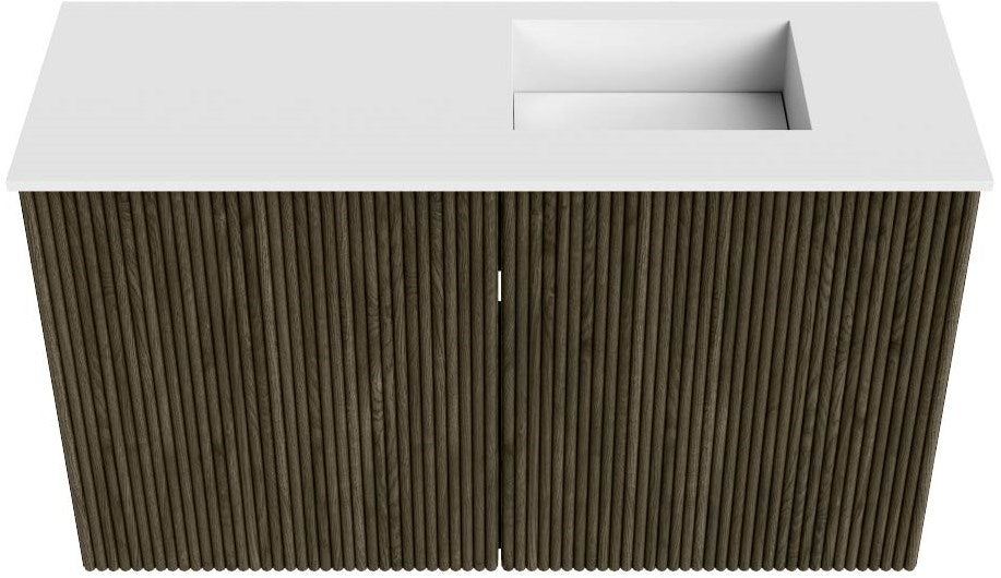 Inclusief elegante wastafel in twee kleuren: Solid Surface Talc (wit) of Urban (zwart)