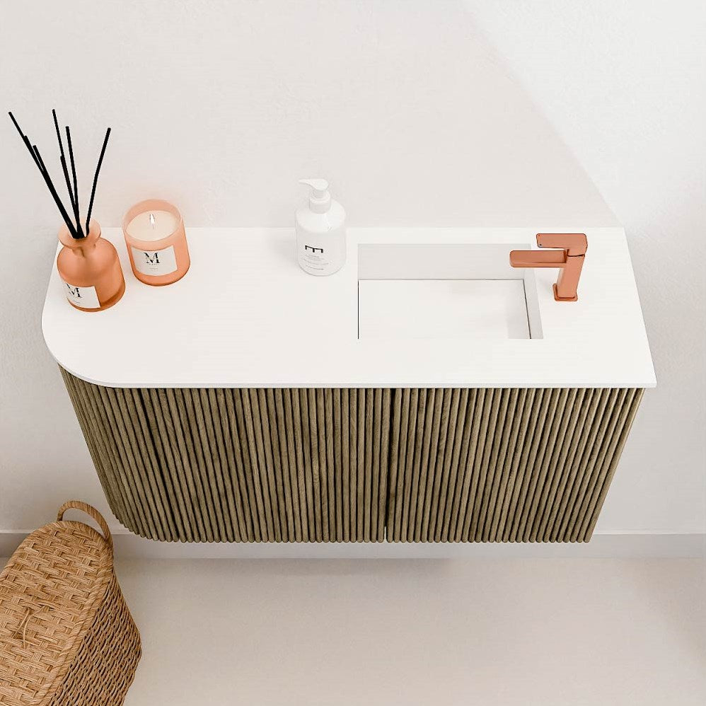 Geef jouw toiletruimte een stijlvolle en luxe uitstraling met het JOYA toiletmeubel van Mondiaz. Dit prachtige meubel is gemaakt van massief eikenhout en eiken fineer, wat zorgt voor een natuurlijke look en een hoogwaardige kwaliteit. Het unieke design met verticale ribbels maakt dit meubel een echte blikvanger in elk interieur.