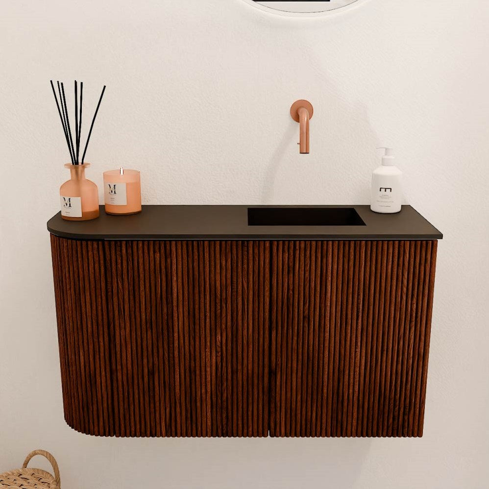 Geef jouw toiletruimte een stijlvolle en luxe uitstraling met het JOYA toiletmeubel van Mondiaz. Dit prachtige meubel is gemaakt van massief eikenhout en eiken fineer, wat zorgt voor een natuurlijke look en een hoogwaardige kwaliteit. Het unieke design met verticale ribbels maakt dit meubel een echte blikvanger in elk interieur.