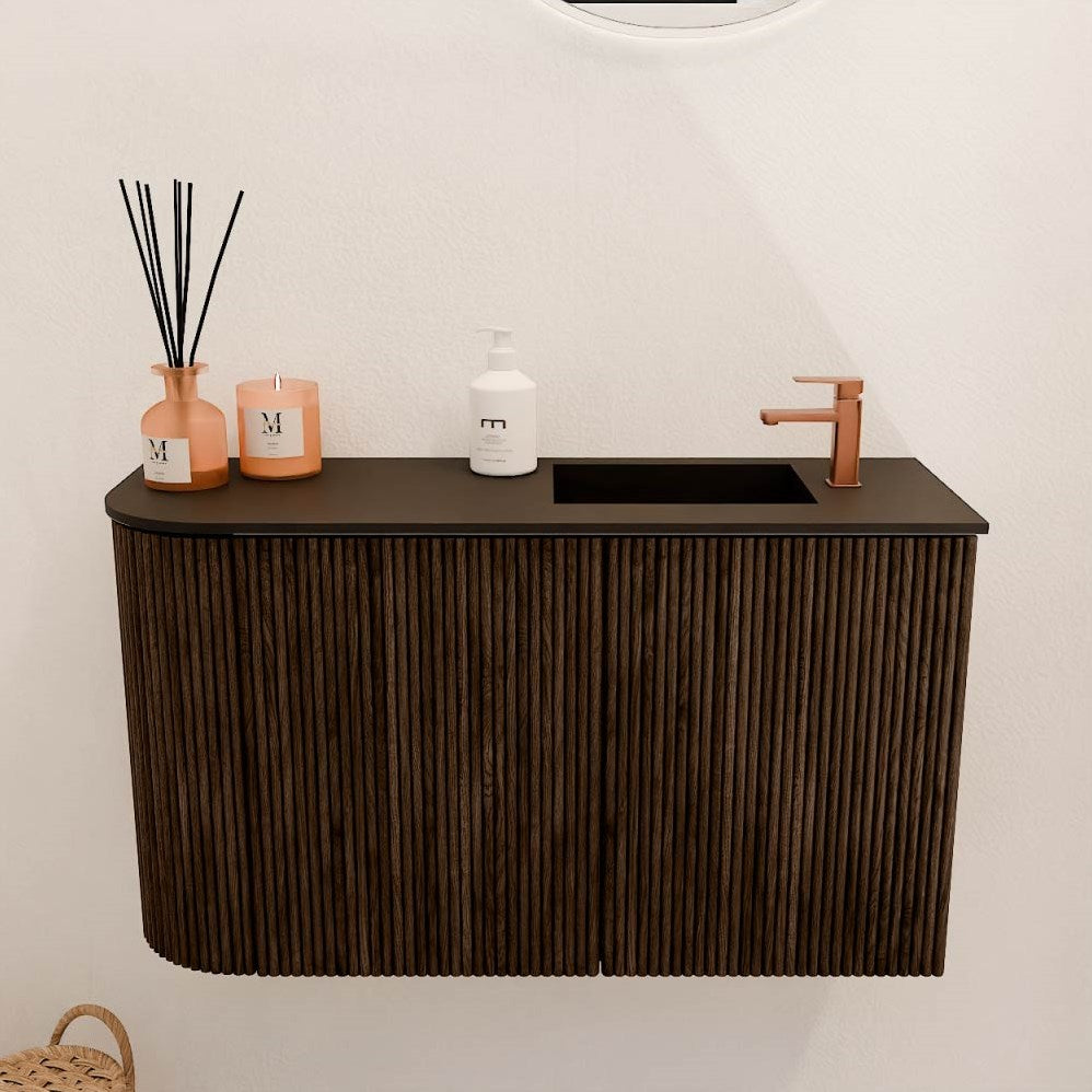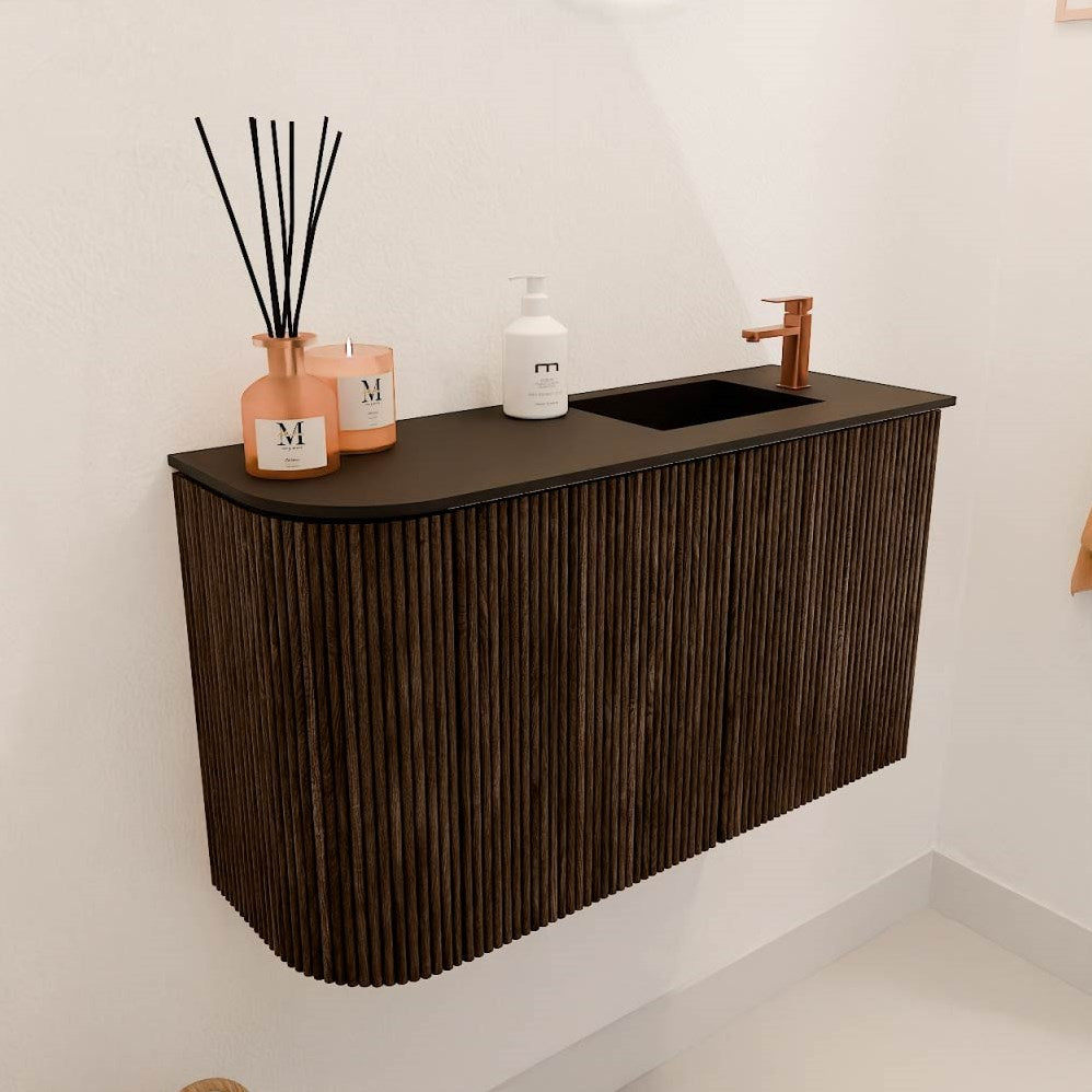 Geef jouw toiletruimte een stijlvolle en luxe uitstraling met het JOYA toiletmeubel van Mondiaz. Dit prachtige meubel is gemaakt van massief eikenhout en eiken fineer, wat zorgt voor een natuurlijke look en een hoogwaardige kwaliteit. Het unieke design met verticale ribbels maakt dit meubel een echte blikvanger in elk interieur.
