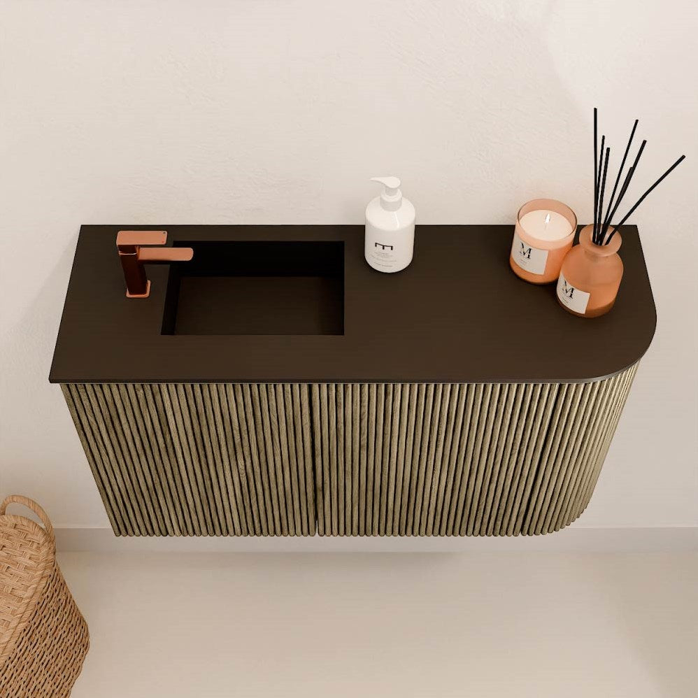 Geef jouw toiletruimte een stijlvolle en luxe uitstraling met het JOYA toiletmeubel van Mondiaz. Dit prachtige meubel is gemaakt van massief eikenhout en eiken fineer, wat zorgt voor een natuurlijke look en een hoogwaardige kwaliteit. Het unieke design met verticale ribbels maakt dit meubel een echte blikvanger in elk interieur.