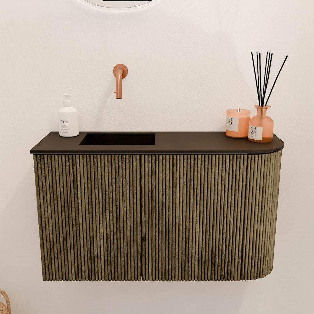 Geef jouw toiletruimte een stijlvolle en luxe uitstraling met het JOYA toiletmeubel van Mondiaz. Dit prachtige meubel is gemaakt van massief eikenhout en eiken fineer, wat zorgt voor een natuurlijke look en een hoogwaardige kwaliteit. Het unieke design met verticale ribbels maakt dit meubel een echte blikvanger in elk interieur.