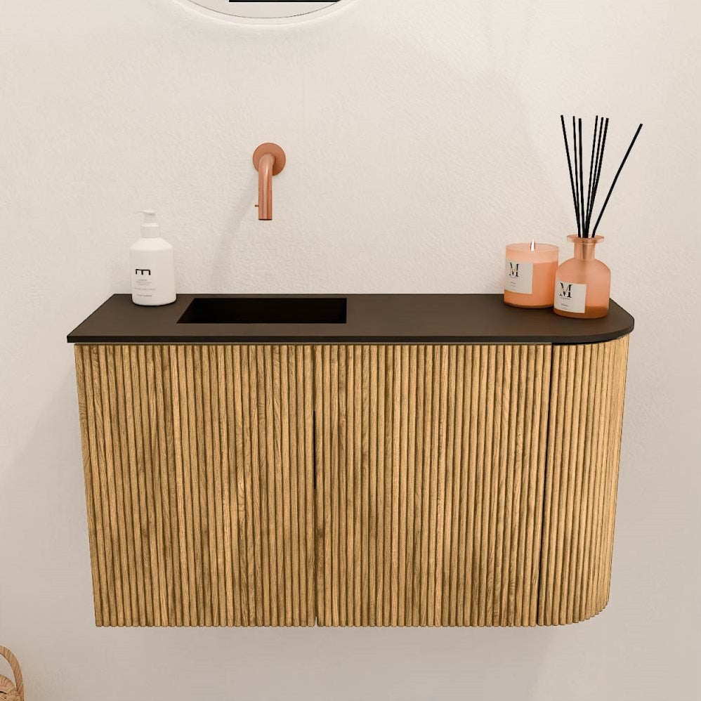 Geef jouw toiletruimte een stijlvolle en luxe uitstraling met het JOYA toiletmeubel van Mondiaz. Dit prachtige meubel is gemaakt van massief eikenhout en eiken fineer, wat zorgt voor een natuurlijke look en een hoogwaardige kwaliteit. Het unieke design met verticale ribbels maakt dit meubel een echte blikvanger in elk interieur.