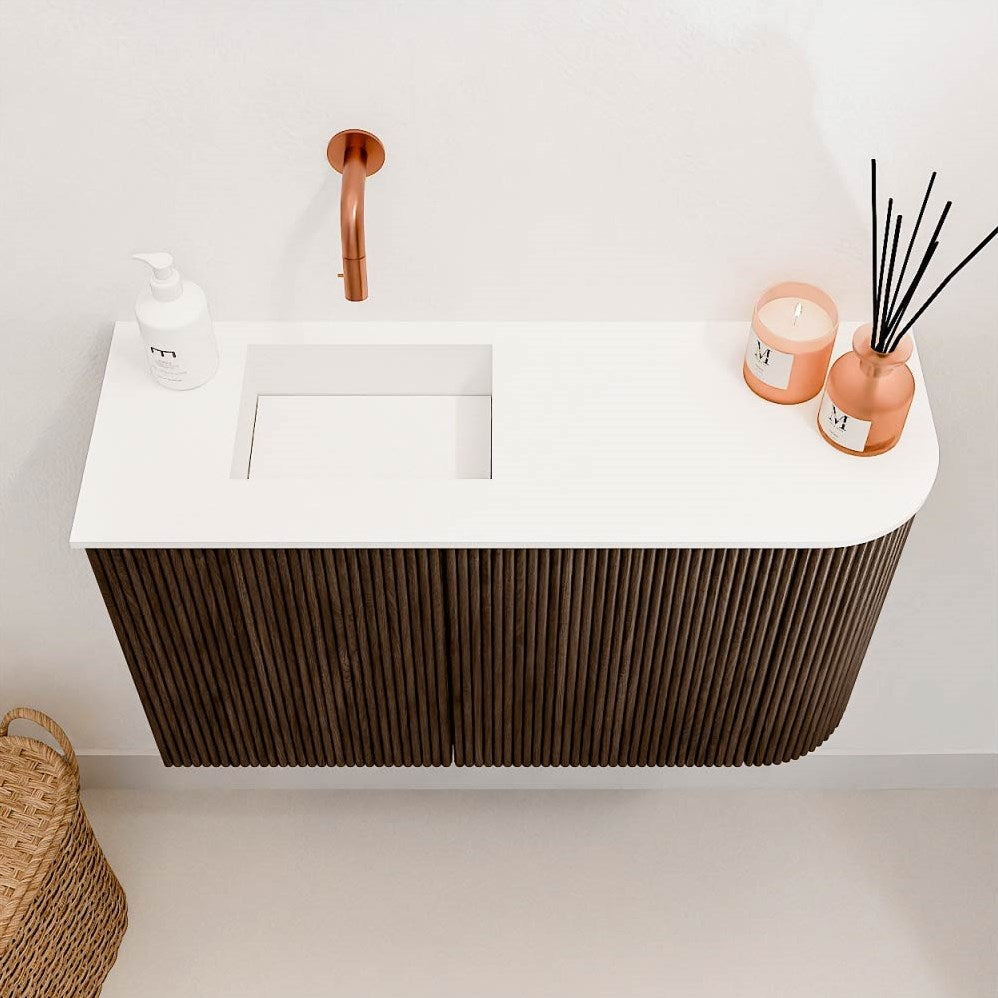 Geef jouw toiletruimte een stijlvolle en luxe uitstraling met het JOYA toiletmeubel van Mondiaz. Dit prachtige meubel is gemaakt van massief eikenhout en eiken fineer, wat zorgt voor een natuurlijke look en een hoogwaardige kwaliteit. Het unieke design met verticale ribbels maakt dit meubel een echte blikvanger in elk interieur.