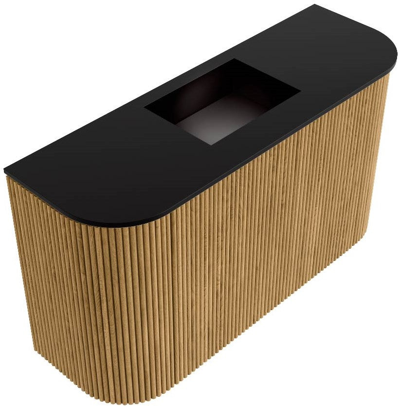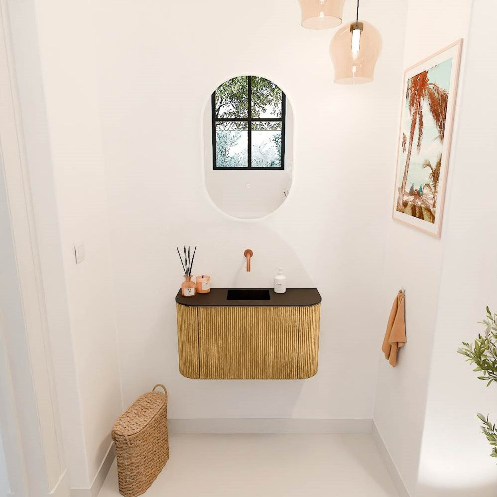 JOYA 73,2cm toiletmeubel ronding links + rechts kleur Oak. Wastafel FAYE positie Midden Zonder kraangat kleur Urban.