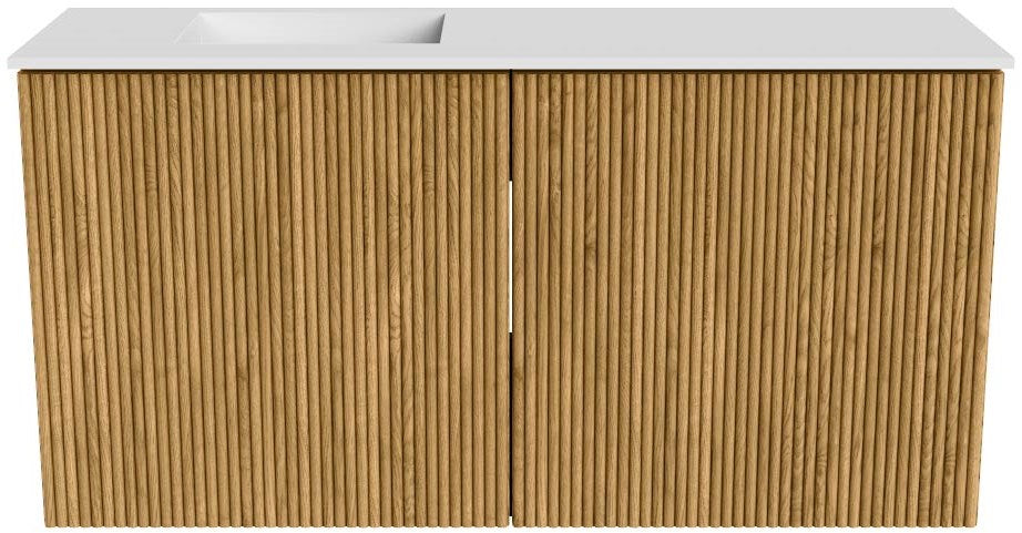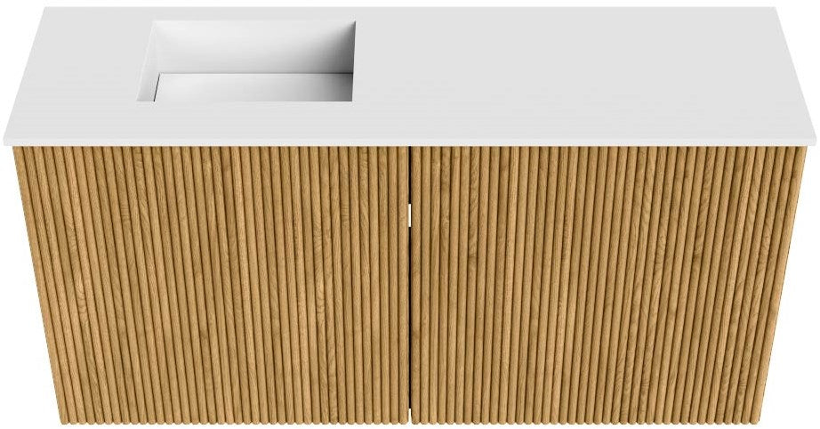 JOYA 80cm toiletmeubel kleur Oak. Wastafel FAYE positie Links Zonder kraangat kleur Talc.