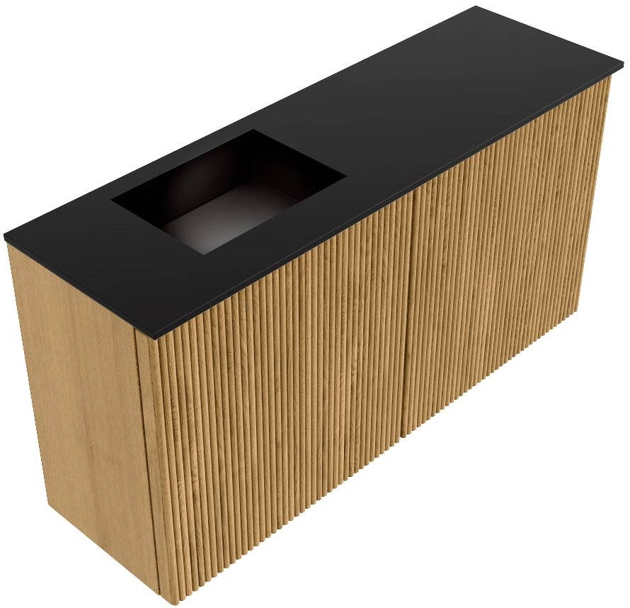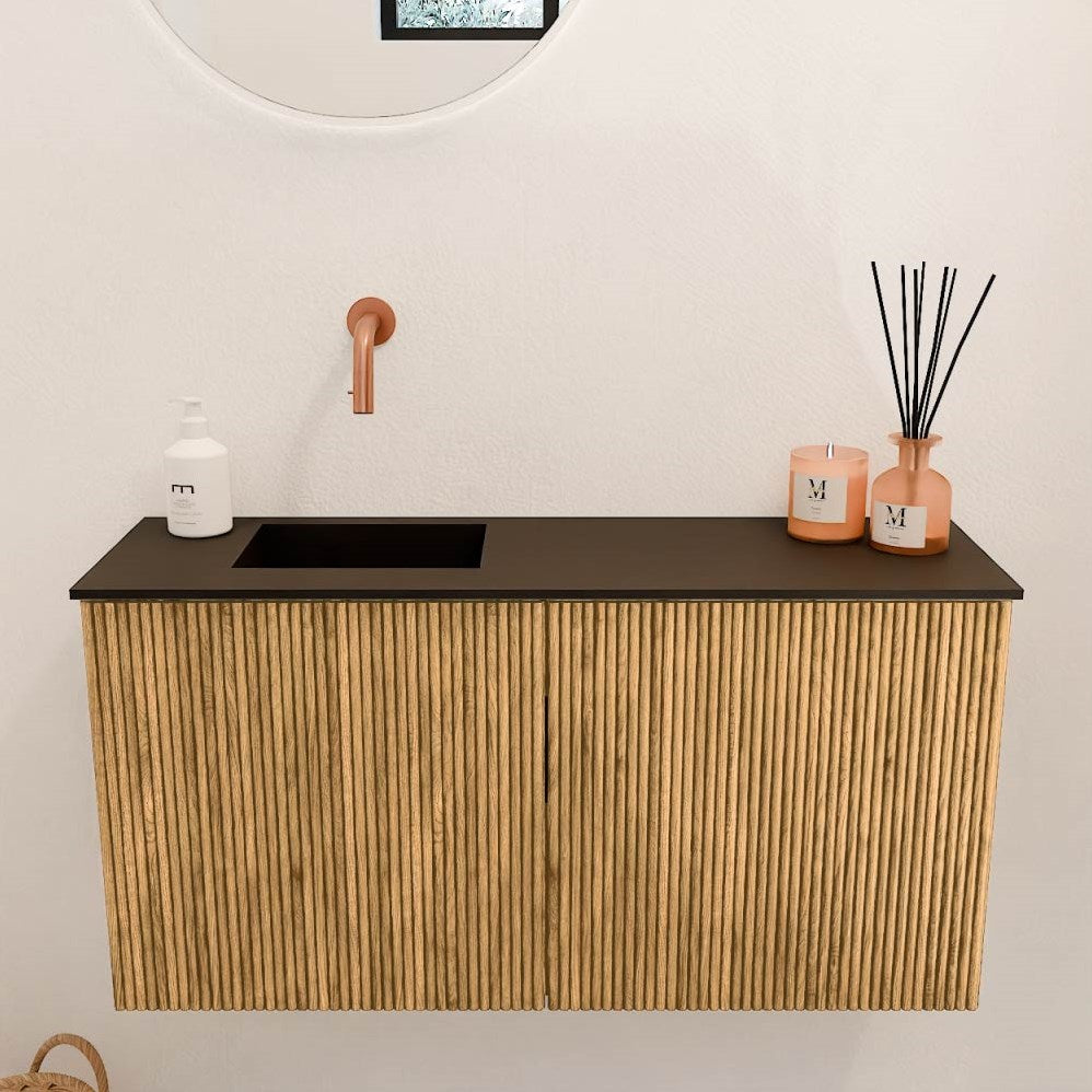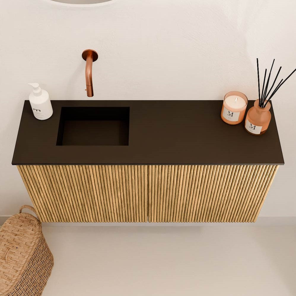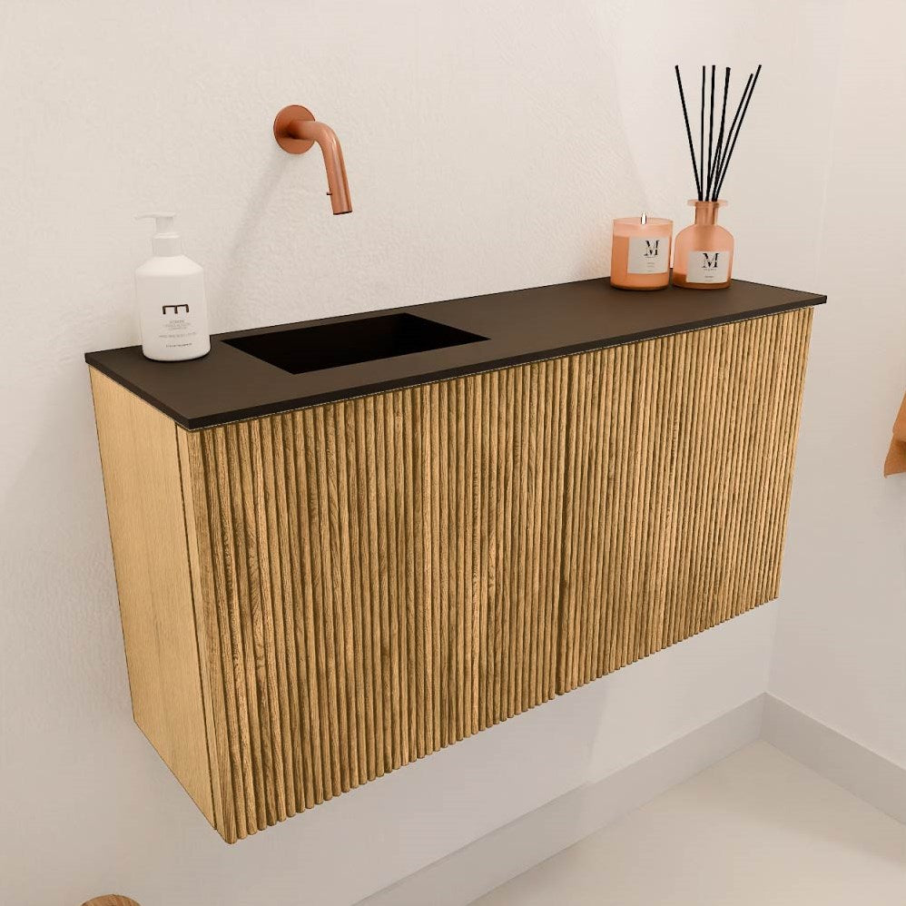 JOYA 80cm toiletmeubel kleur Oak. Wastafel FAYE positie Links Zonder kraangat kleur Urban.